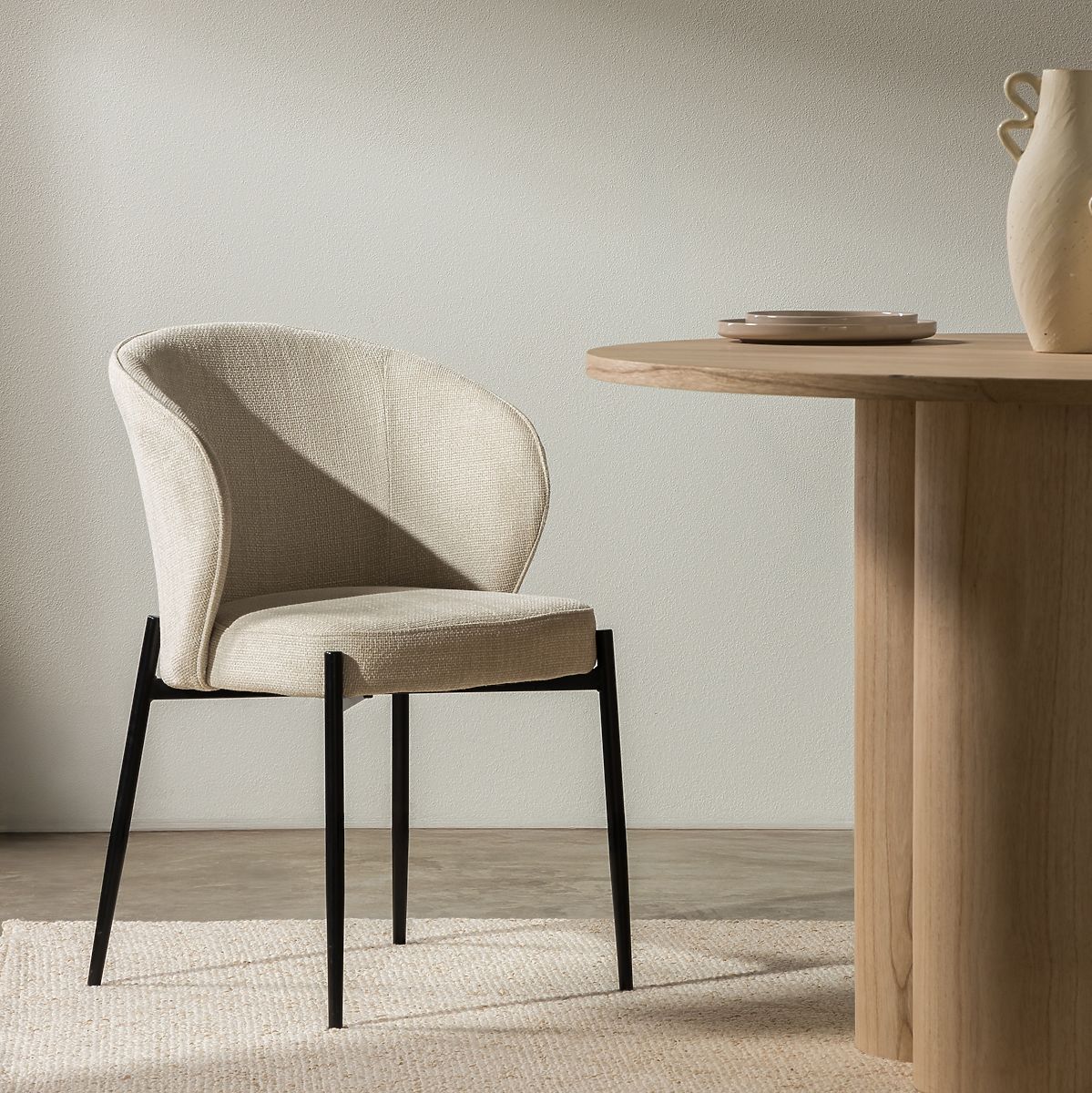 Krzesło Avery z jasnobeżową tapicerką i czarnymi nogami. .. więcej