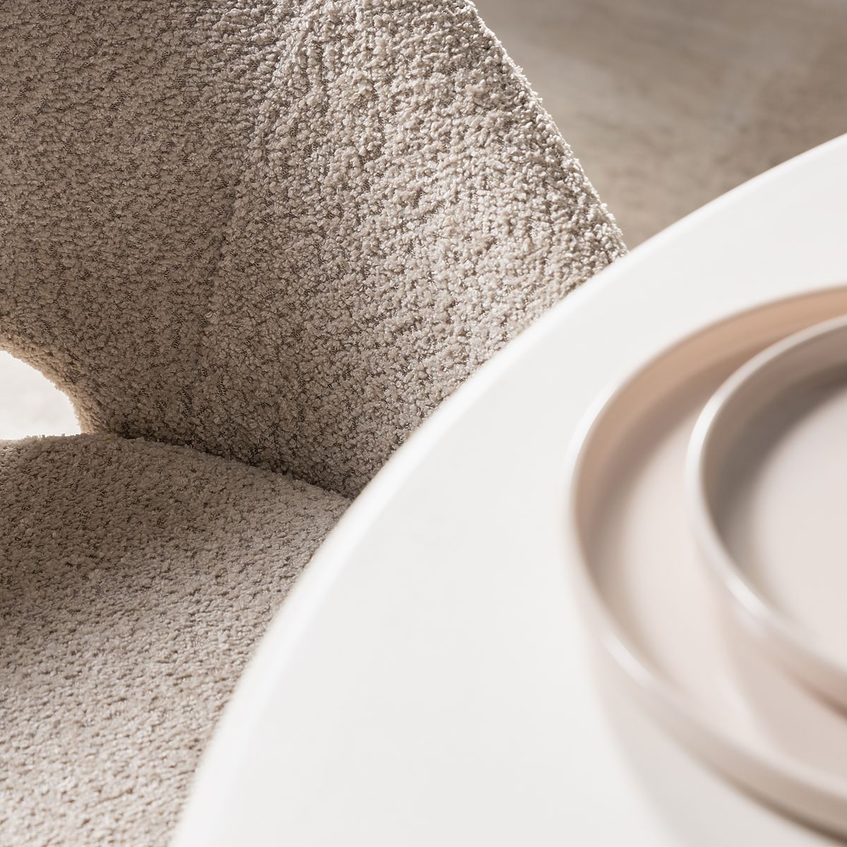 Krzesło Luigi z beżową tapicerką i czarnymi nogami. .. więcej