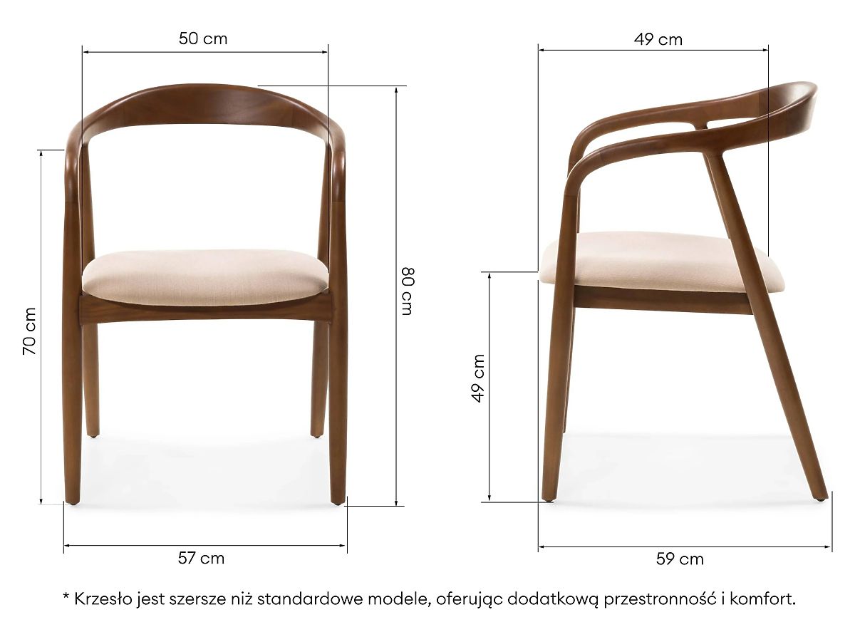 Drewniane krzesło Ludvika, zaokrąglone, orzech/beżowy