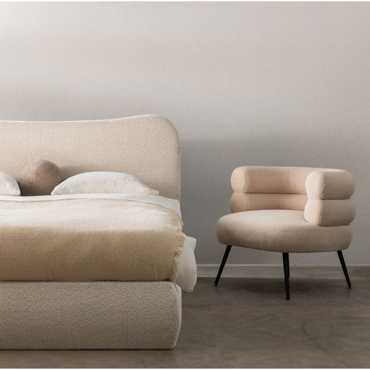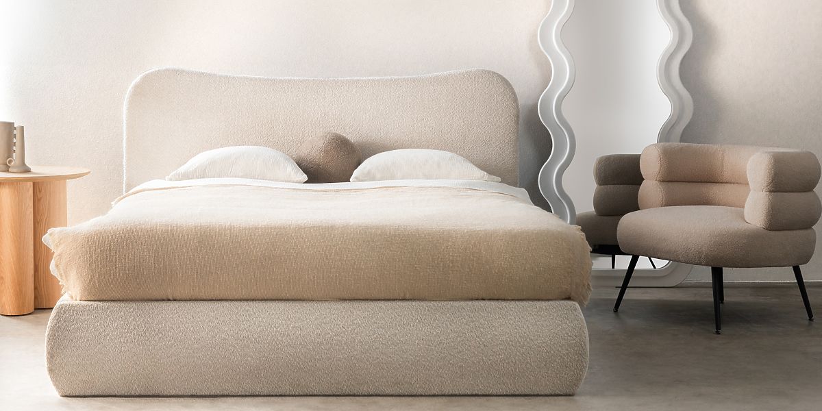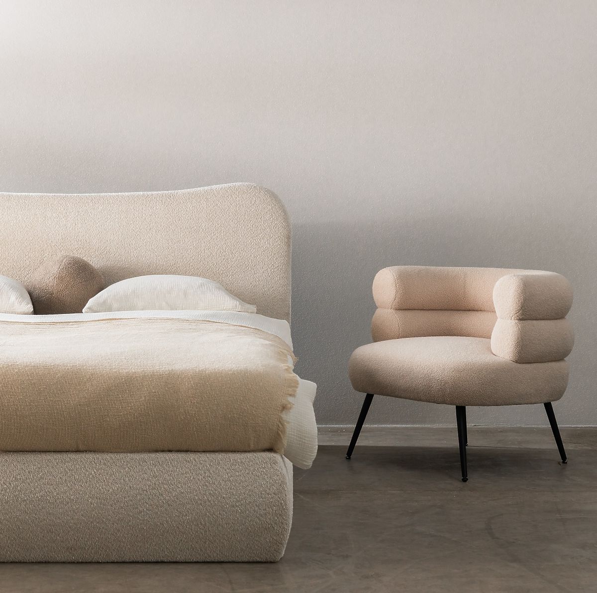 Tapicerowane łóżko Derry z zaokrąglonym wezgłowiem i schowkiem. .. więcej