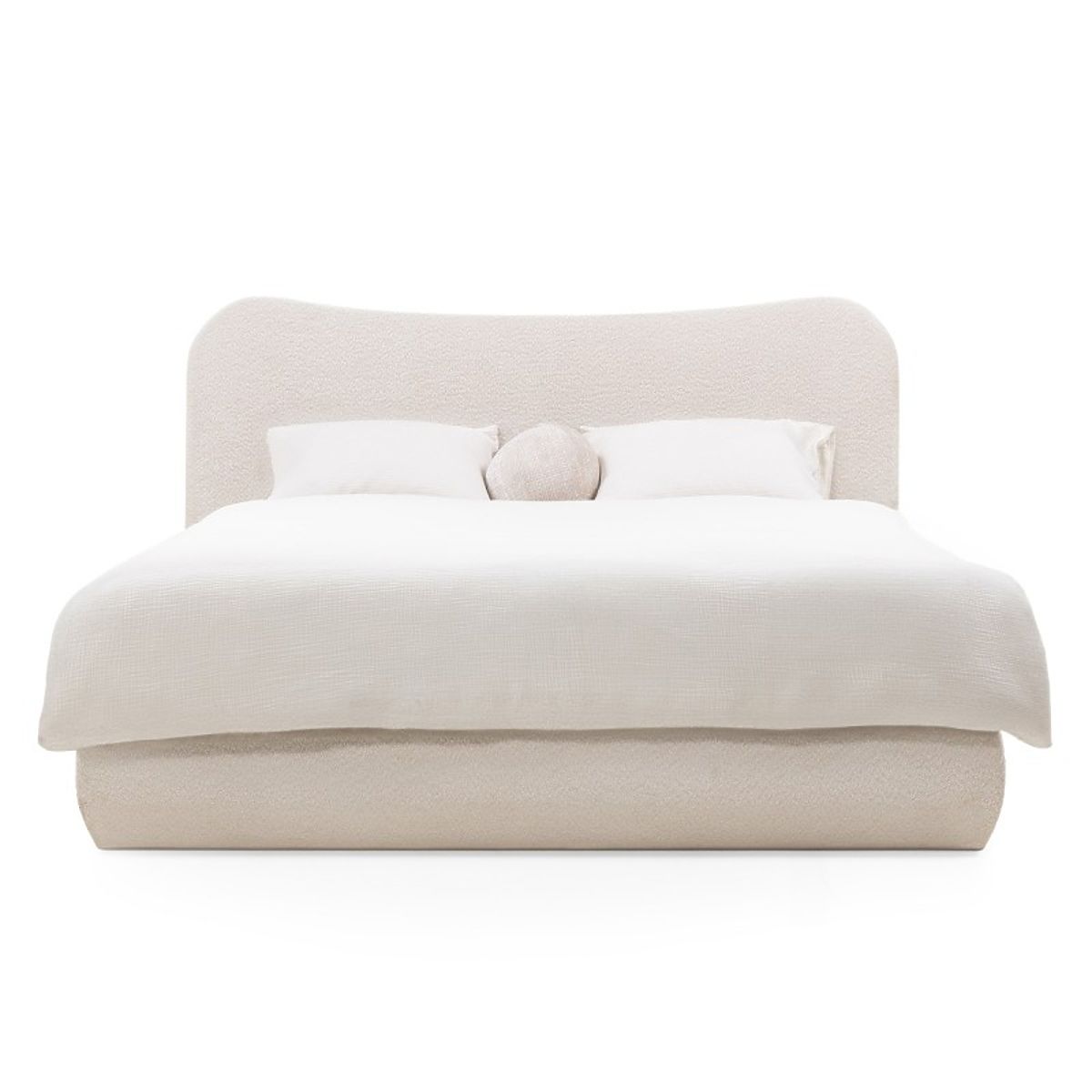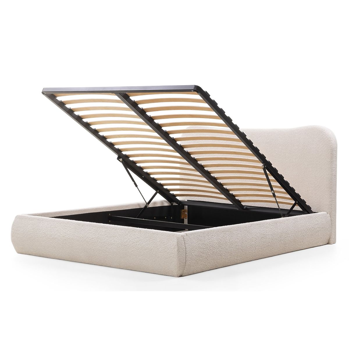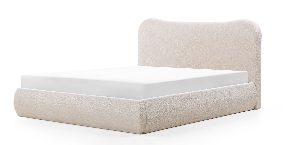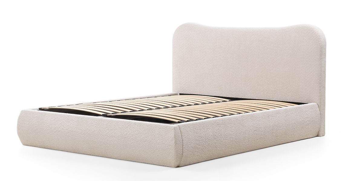 Lukahome.pl » Łóżka / Łóżka podwójne / Łóżka 160x200 / Tapicerowane łóżko Derry 160x200 cm, z stelażem i schowkiem, zaokrąglone, beżowe