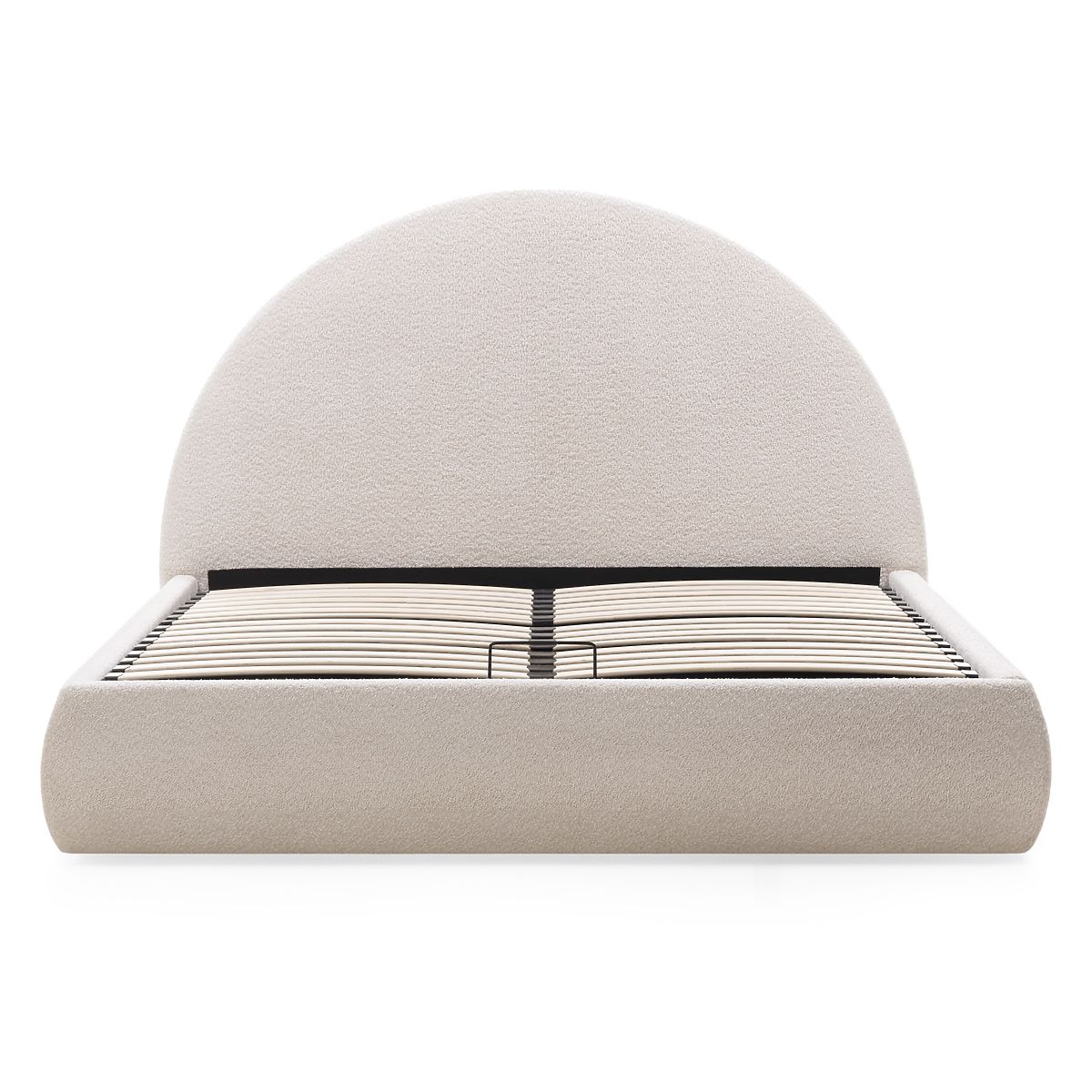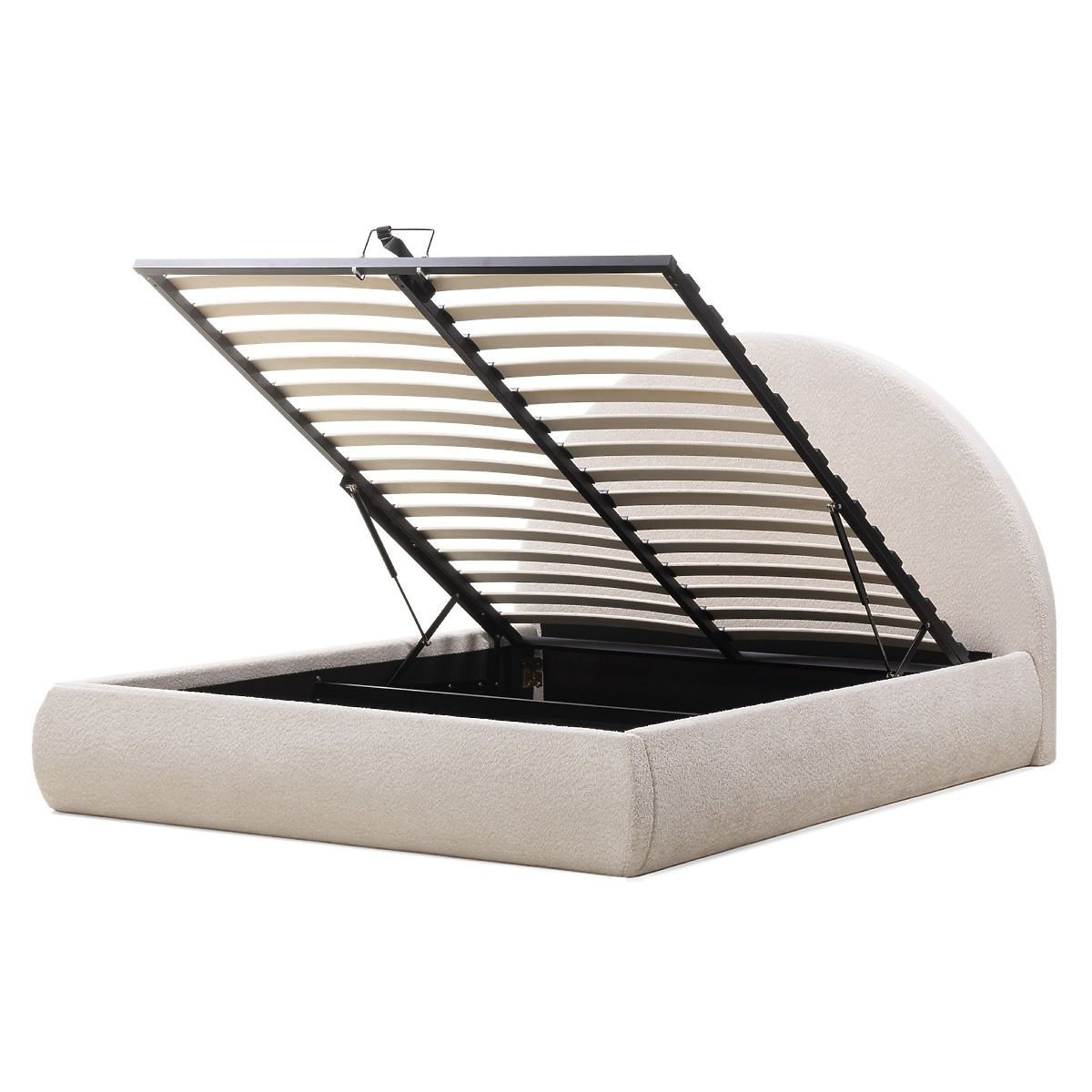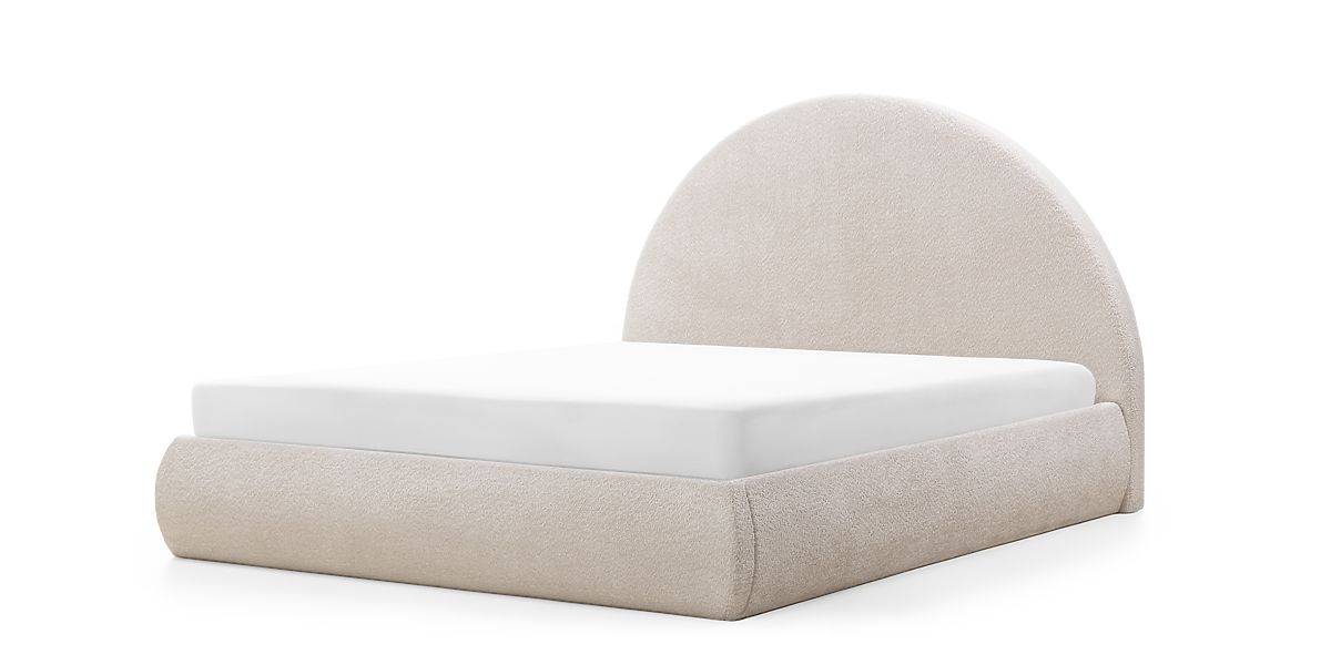 Lukahome.pl » Łóżka / Łóżka podwójne / Łóżka 160x200 / Tapicerowane łóżko Orbi 160x200 cm, z stelażem i schowkiem, zaokrąglone, beżowe