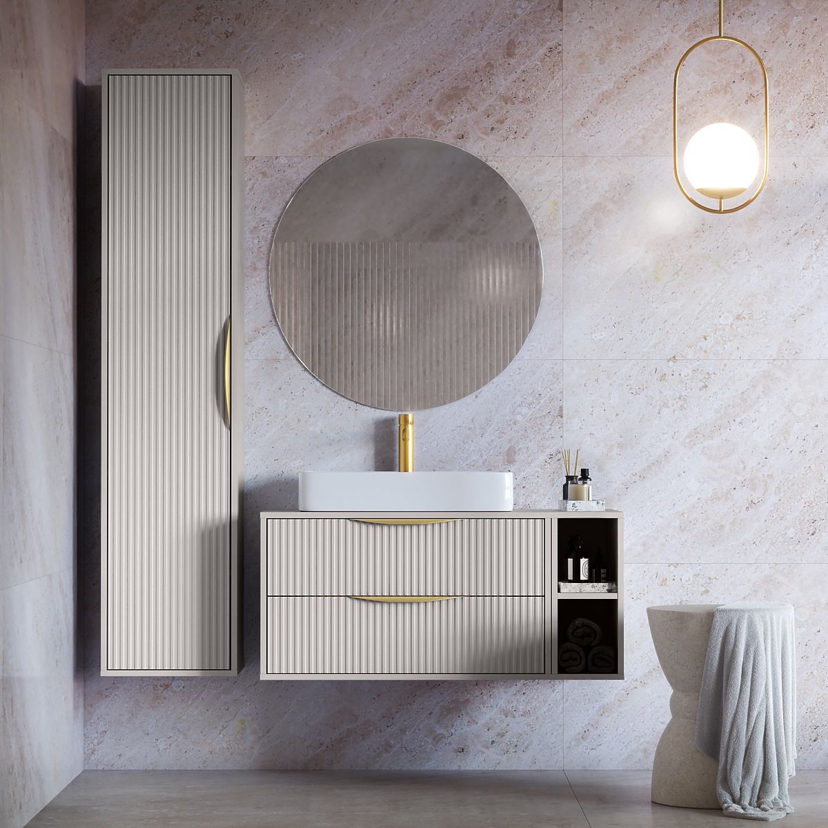 Lukahome.pl » Łazienka i toaleta / Szafki łazienkowe / Szafka pod umywalkę na blat Avila 2.0, 80 cm, żłobiona, złote uchwyty, kaszmir