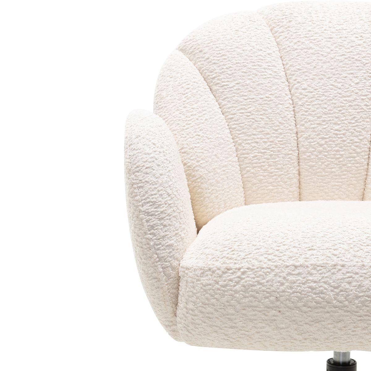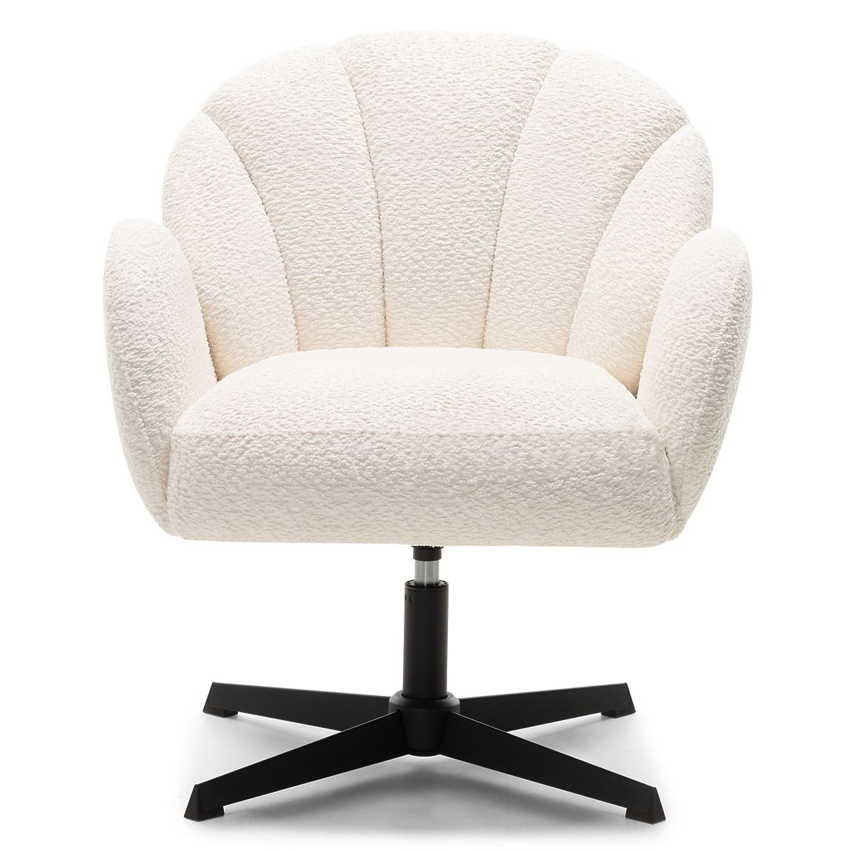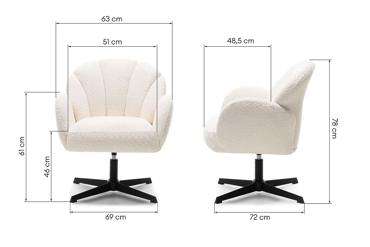 Krzesło Casablanca z białą tkaniną boucle i czarnymi nogami. .. więcej