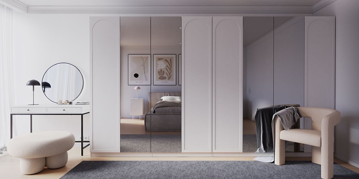 Drzwi do szafy z dekoracyjnym łukiem i systemem push to open. .. więcej
