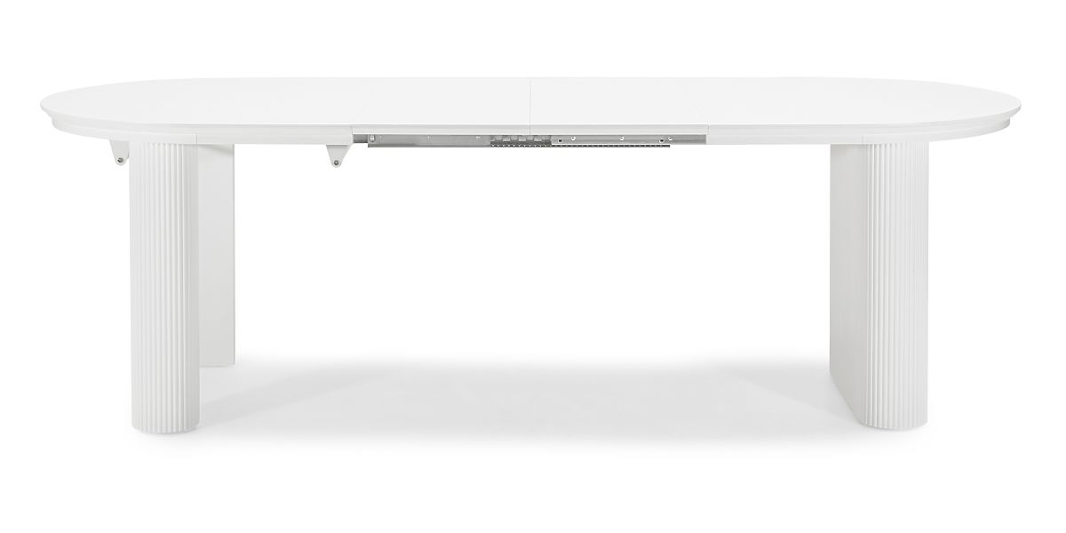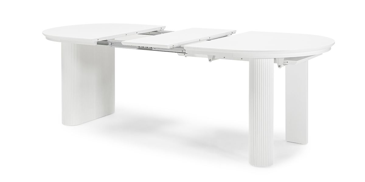 Lukahome.pl » Jadalnia i kuchnia / Stoły jadalne / Rozkładany stół Audrey 160-240 cm, owalny, biały, z rowkowaniem, zaokrąglone kształty