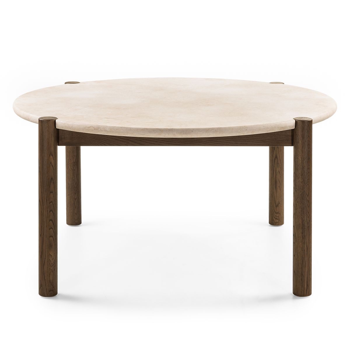 Okrągły stół Bruna z marmurowym blatem i dębowymi nogami. .. więcej