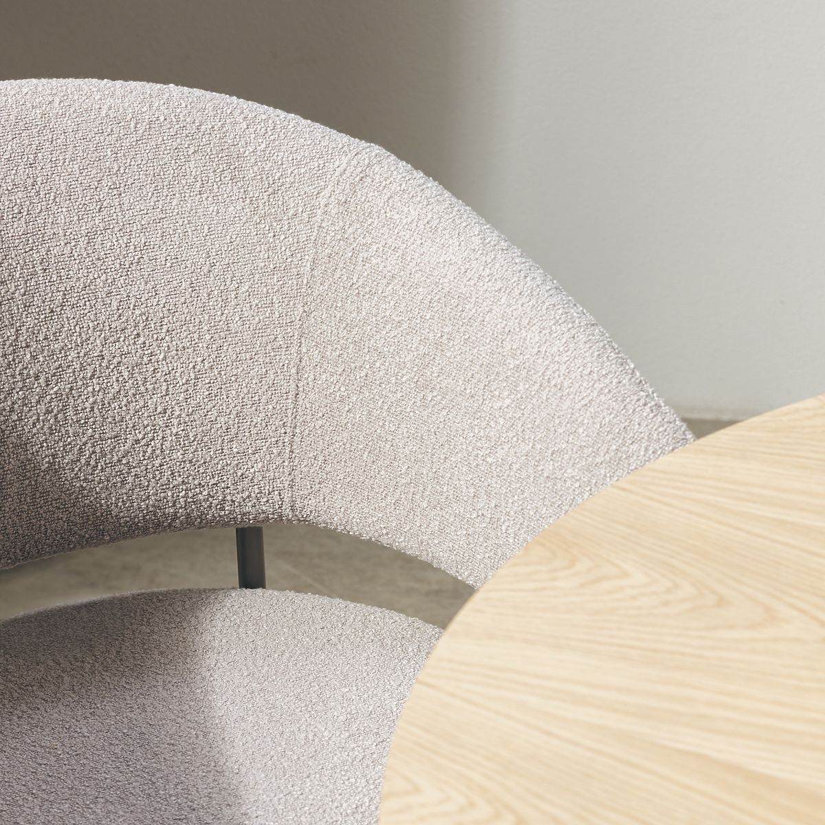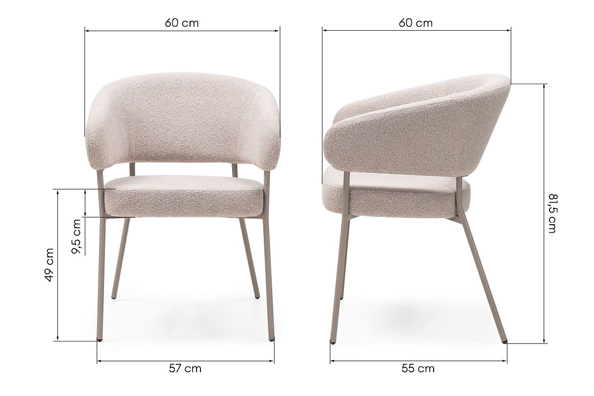 Krzesło Lamu z beżową tapicerką bouclé i metalowymi nogami. .. więcej