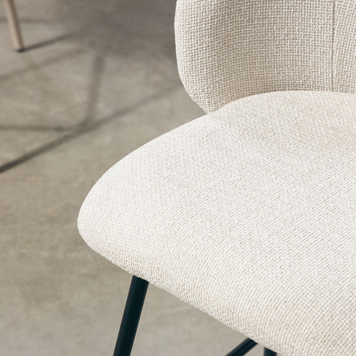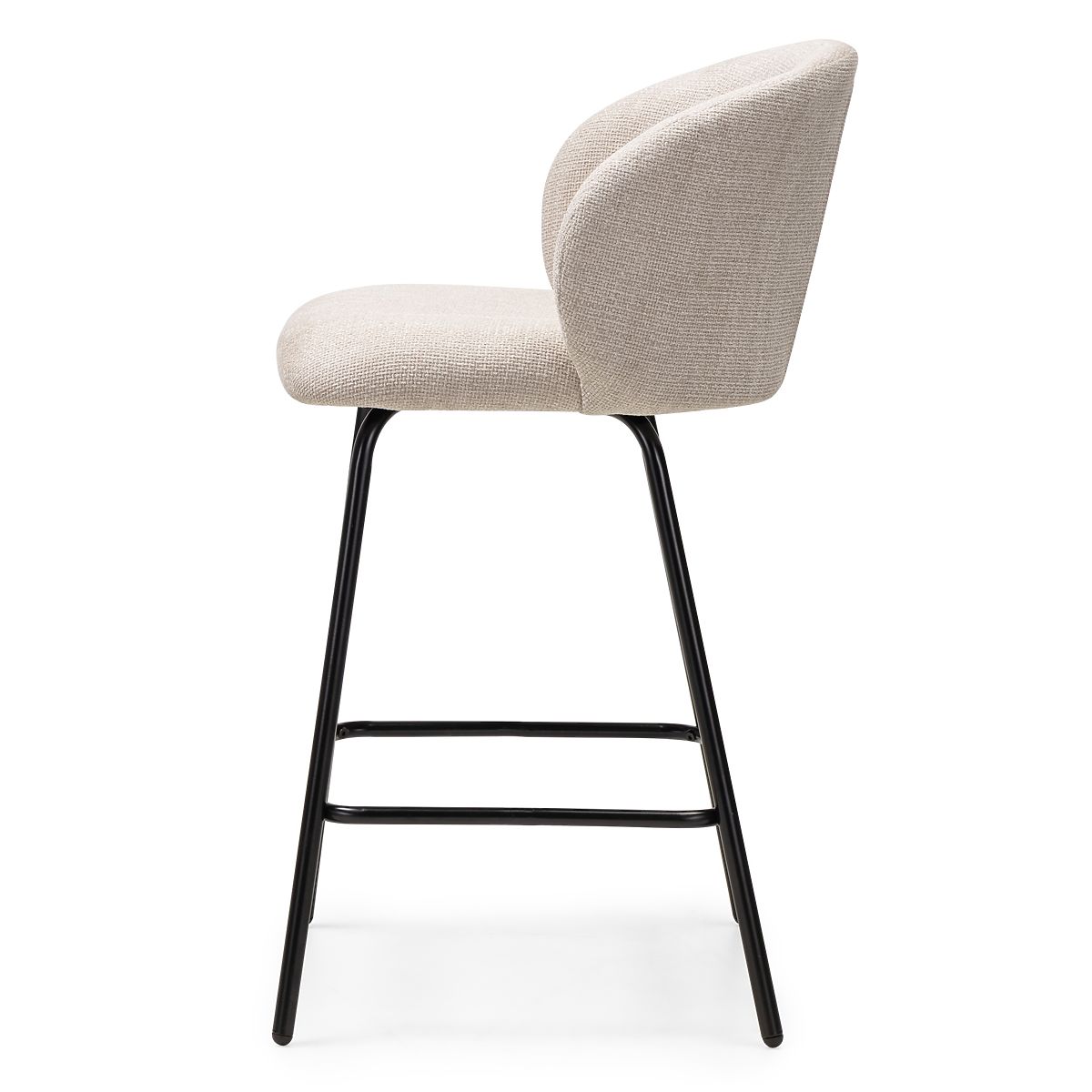 Krzesło barowe Larisa z beżową tapicerką i czarnymi nogami. .. więcej