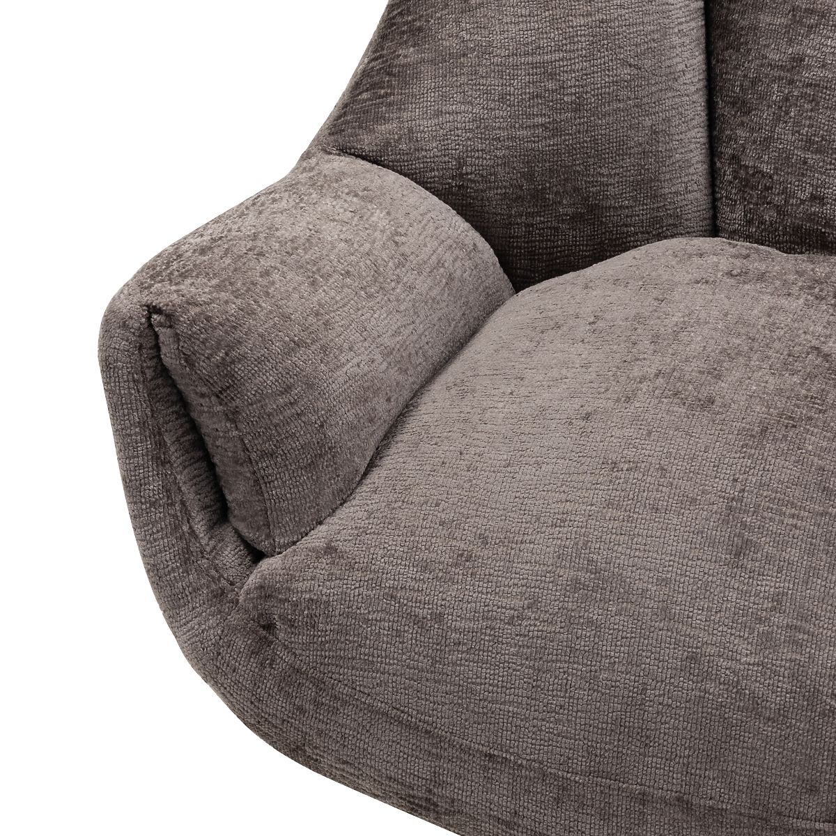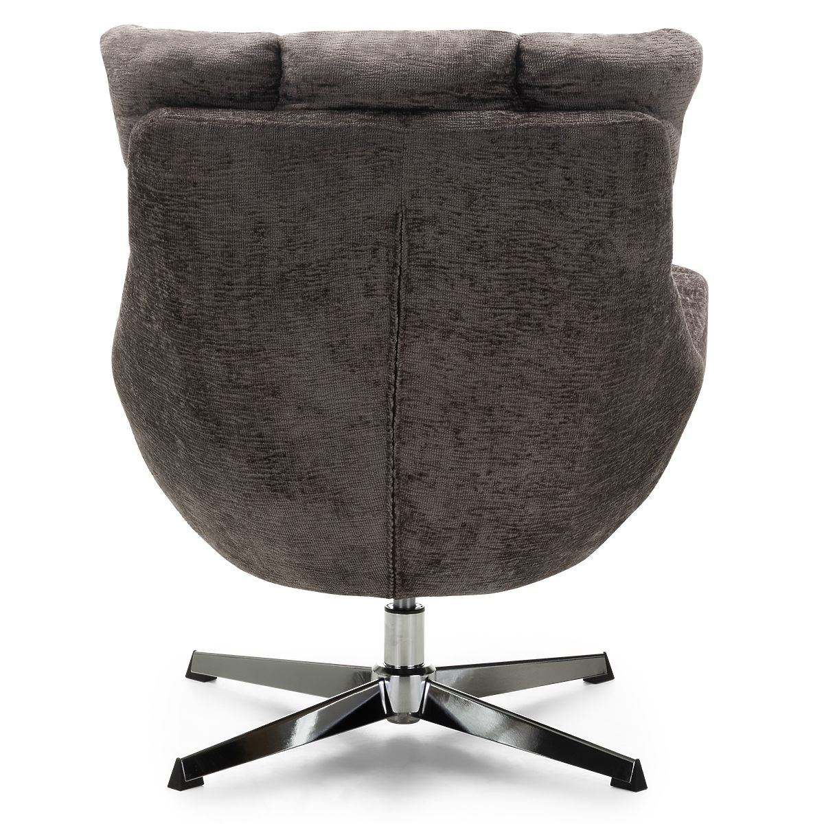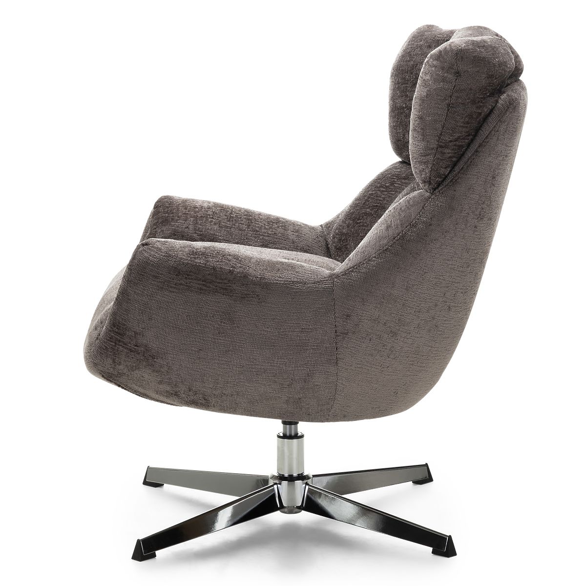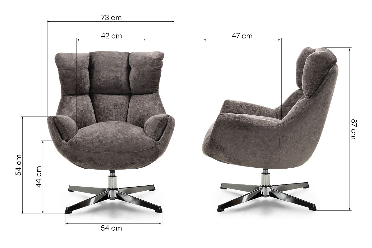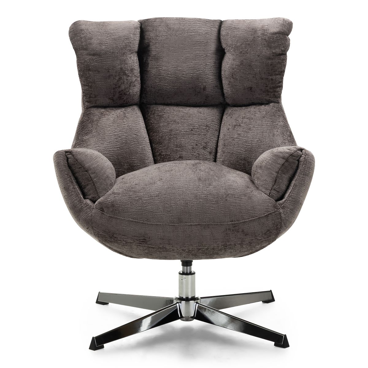 Obrotowe krzesło z brązowo-szarej tkaniny i chromowaną podstawą. .. więcej