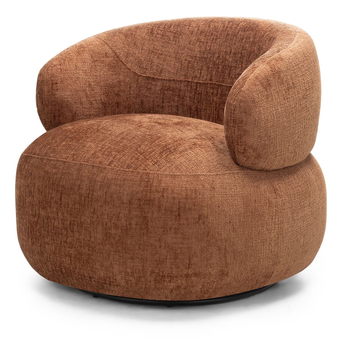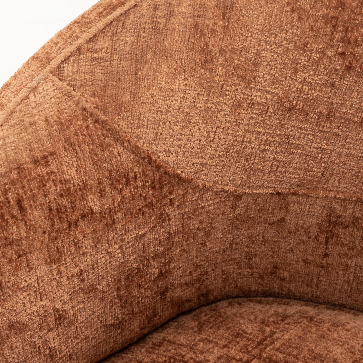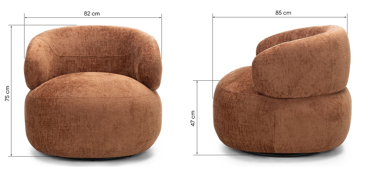 Obrotowe krzesło Rumble z miedzianą tkaniną i zaokrąglonymi kształtami. .. więcej