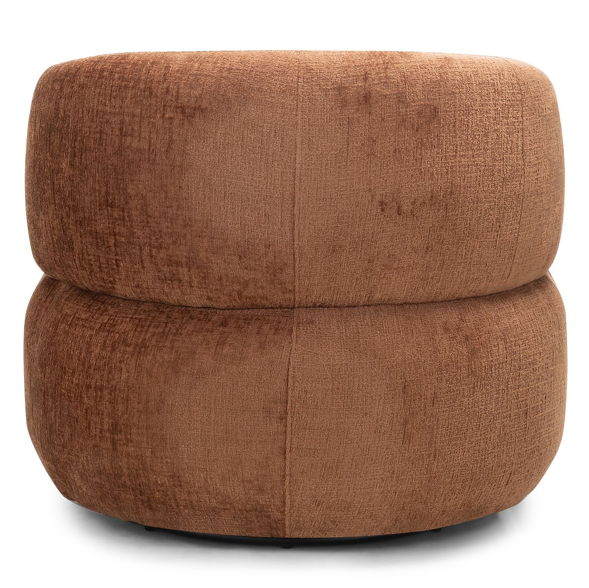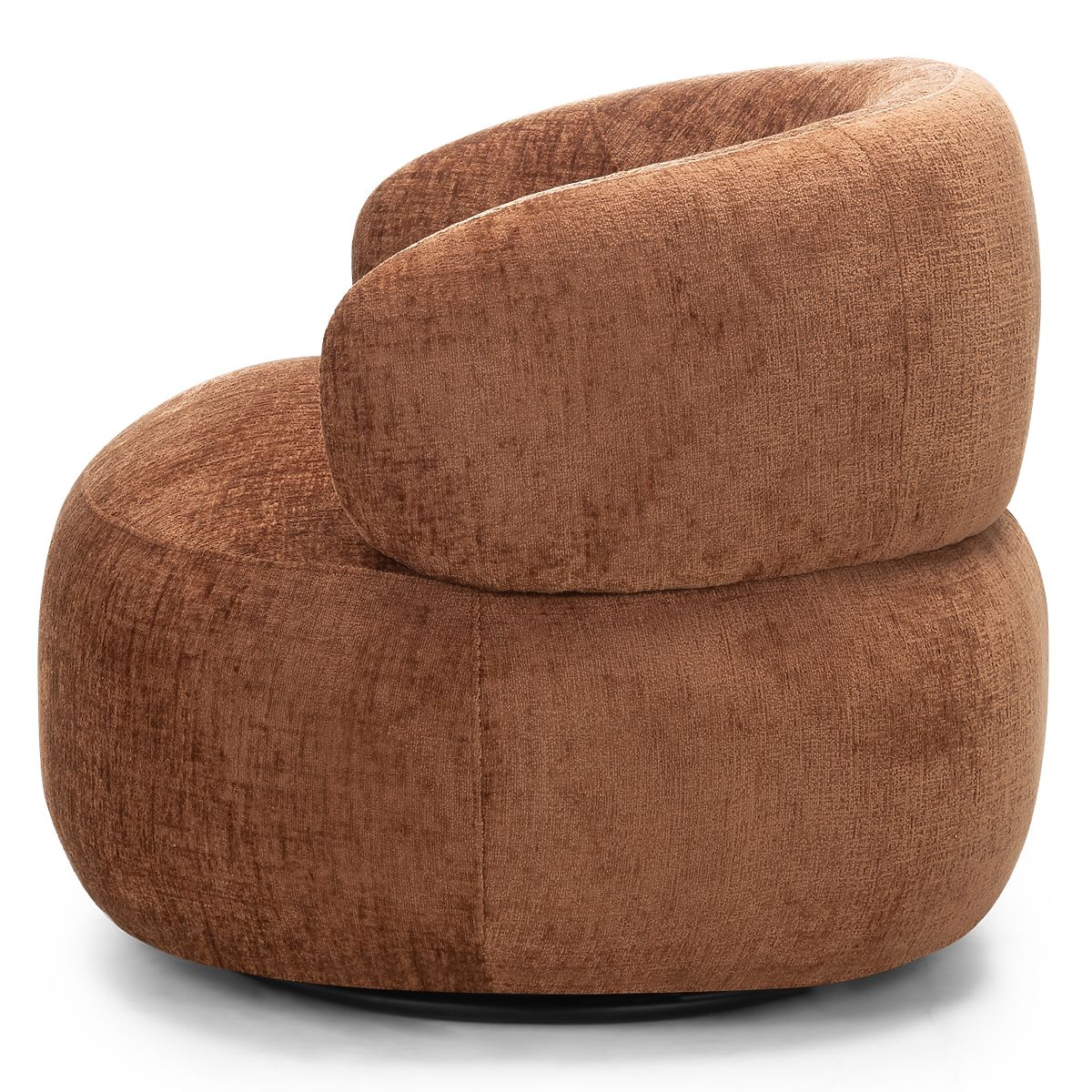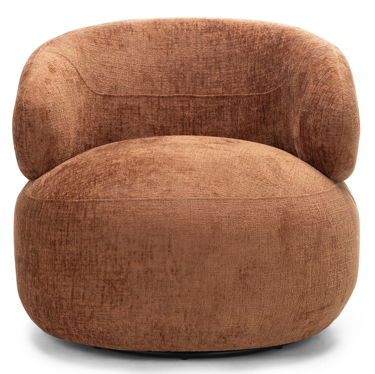 Obrotowe krzesło Rumble z miedzianą tkaniną i zaokrąglonymi kształtami. .. więcej