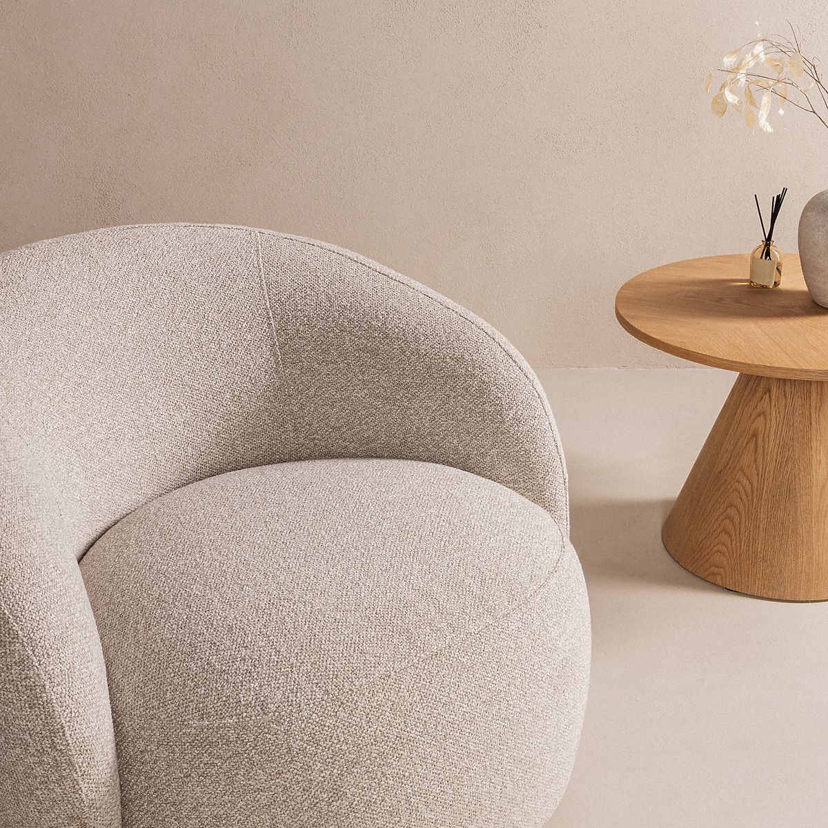 Lukahome.pl » Fotele i siedziska / Fotele / Obrotowe krzesło Nambi beżowo-szare, zaokrąglone kształty