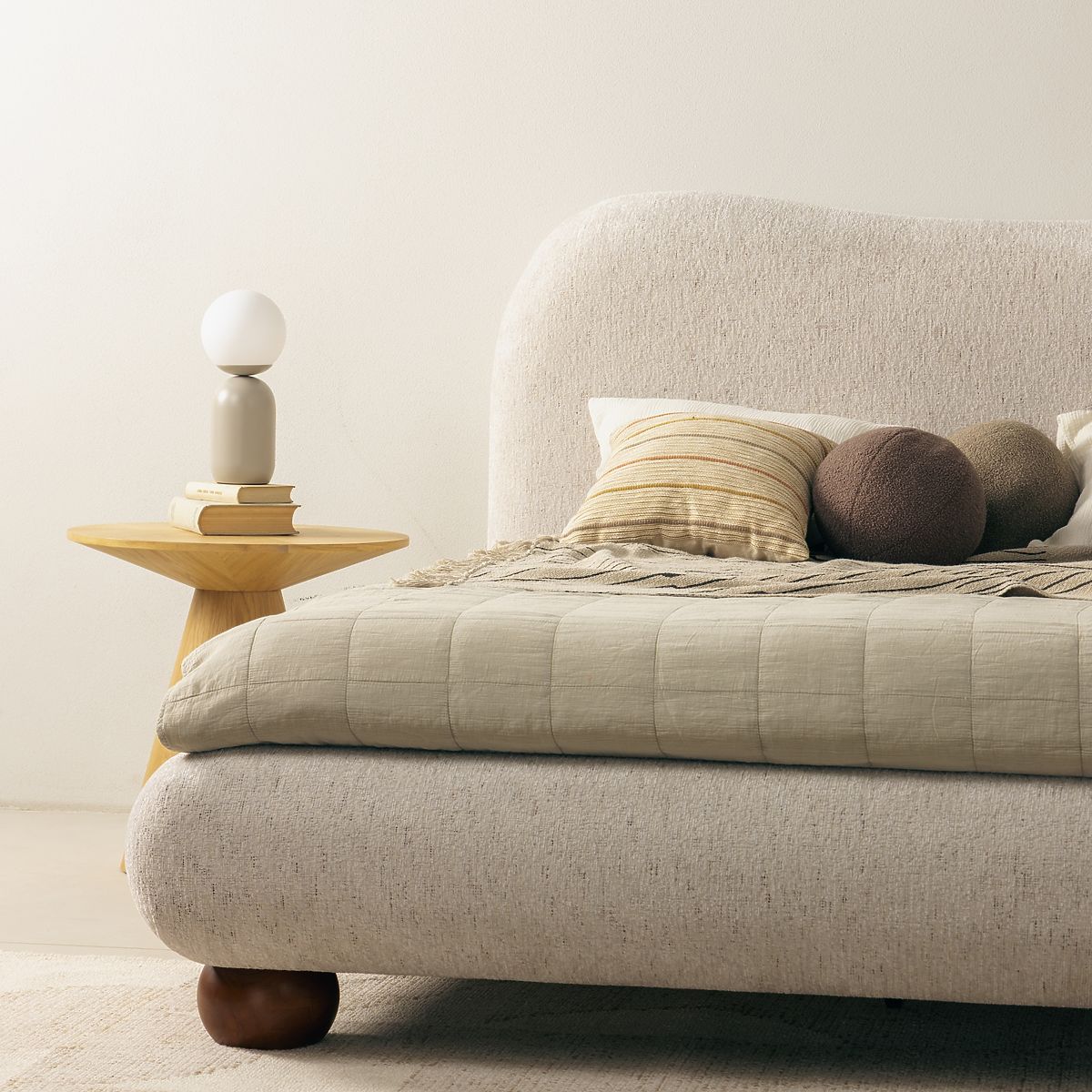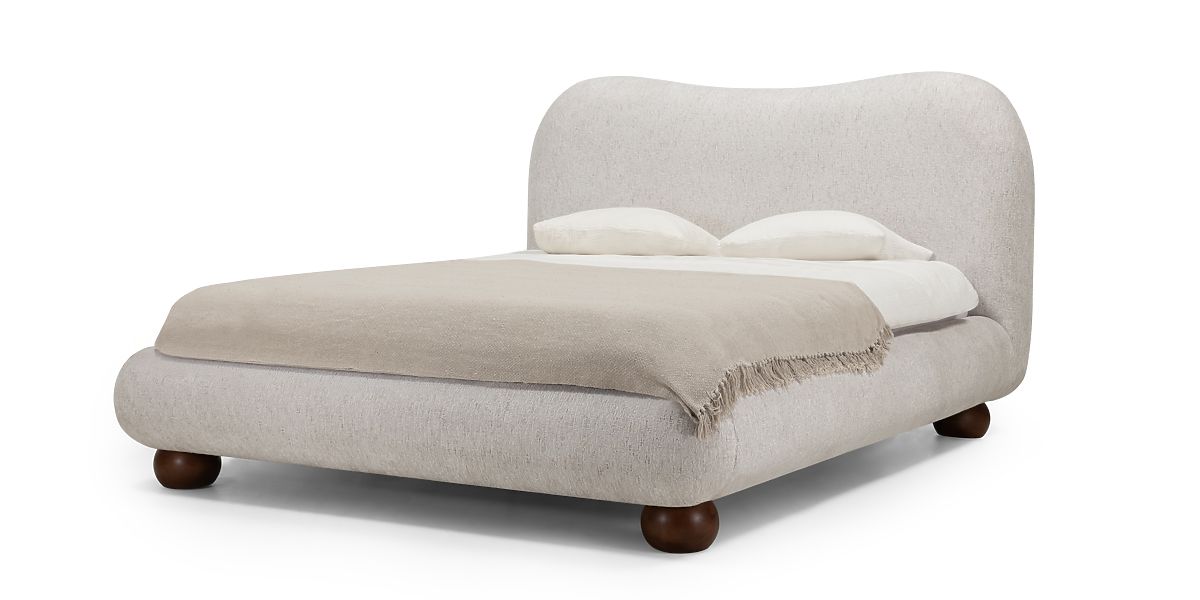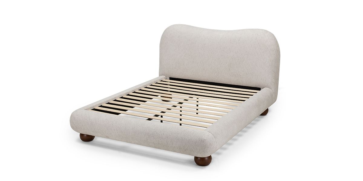 Tapicerowane łóżko Bowee 160x200 cm z jasnobeżową tapicerką i stelażem. .. więcej