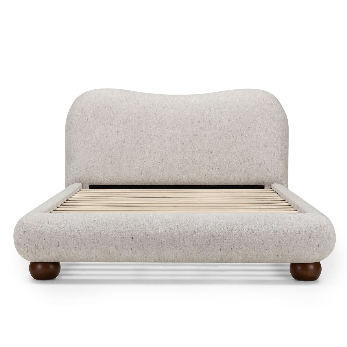 Lukahome.pl » Łóżka / Małżeński łóżko / Łóżka 160x200 / Tapicerowane łóżko Bowee 160x200 cm, ze stelażem, jasnobeżowe, nóżki kula