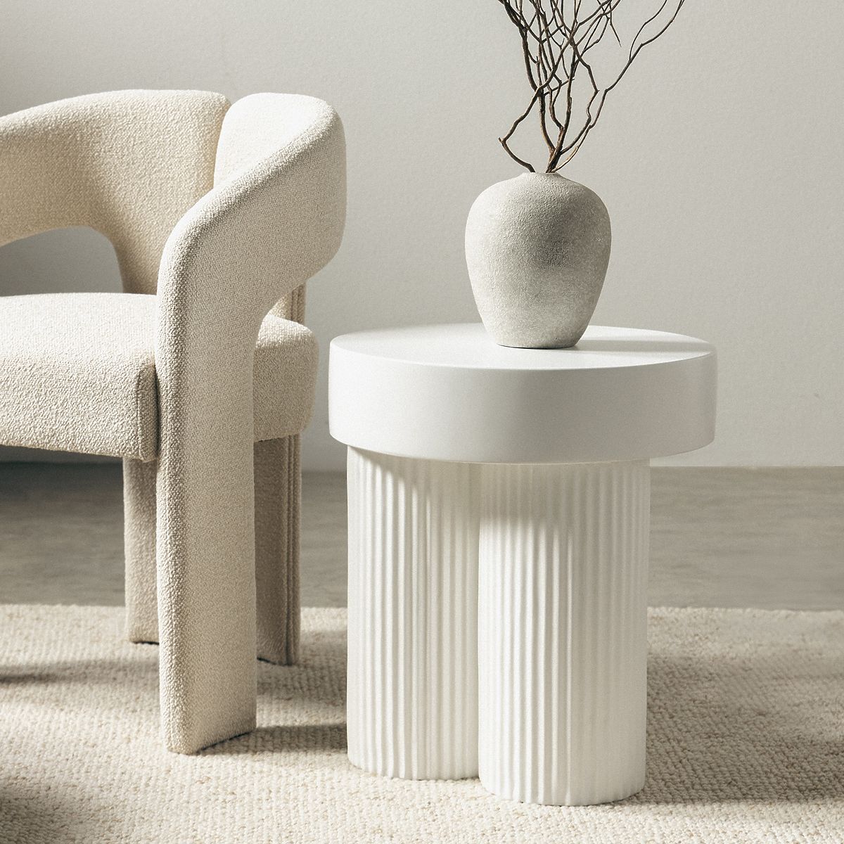 Okrągły stolik Salerno z matowym wykończeniem i rowkowaną podstawą. .. więcej