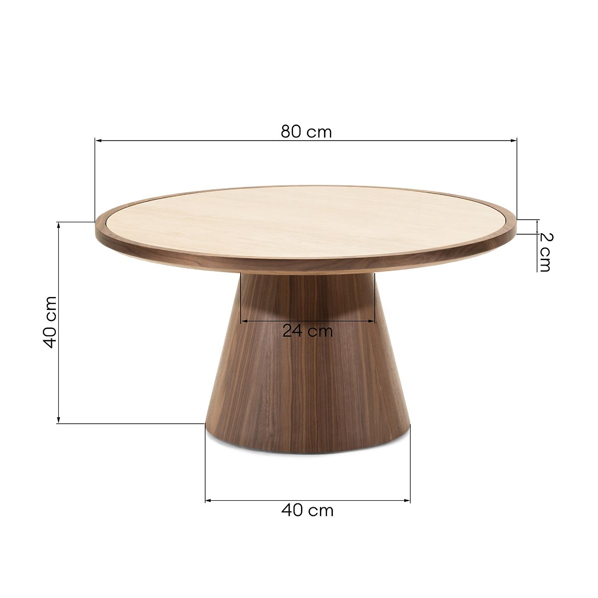 Lukahome.pl » Stoły i stoliki kawowe / Stoliki kawowe / Stolik kawowy Kyoto 80 cm, okrągły, trawertyn/orzech