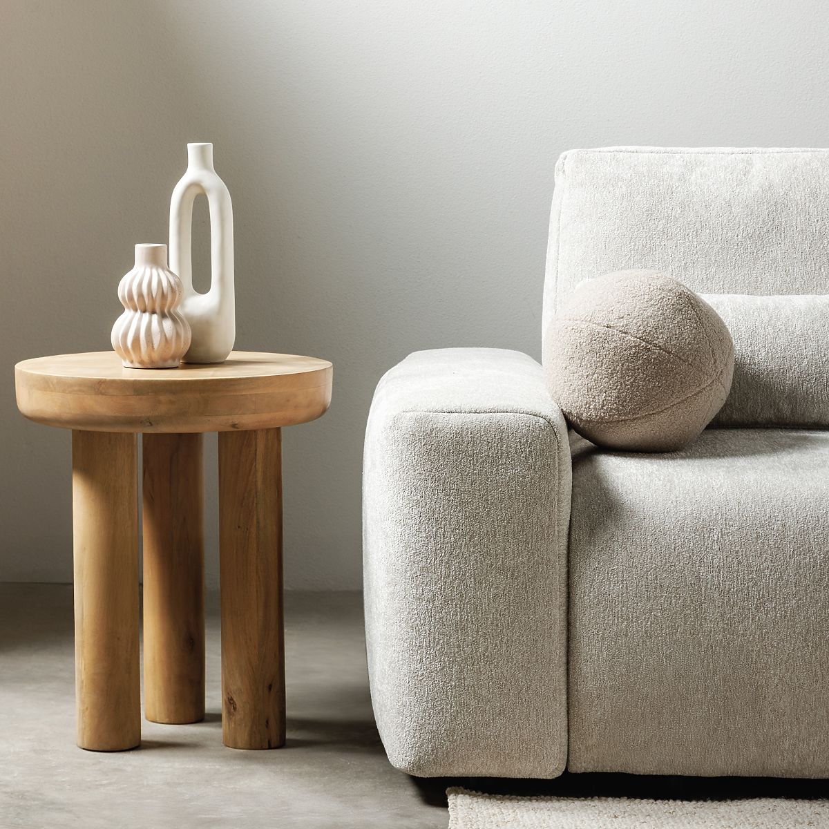 Lukahome.pl » Stoły i stoły / Konferencja stoły / Stolik boczny Limali 50 cm, okrągły, drewno mango, zaokrąglone kształty
