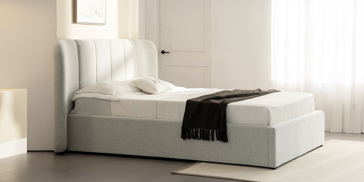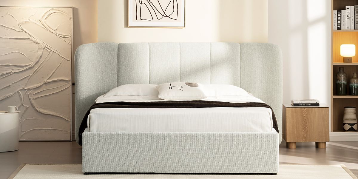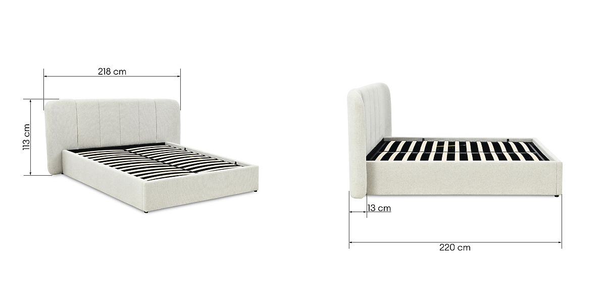 Tapicerowane łóżko Snoovia z miejscem do przechowywania i stelażem. .. więcej