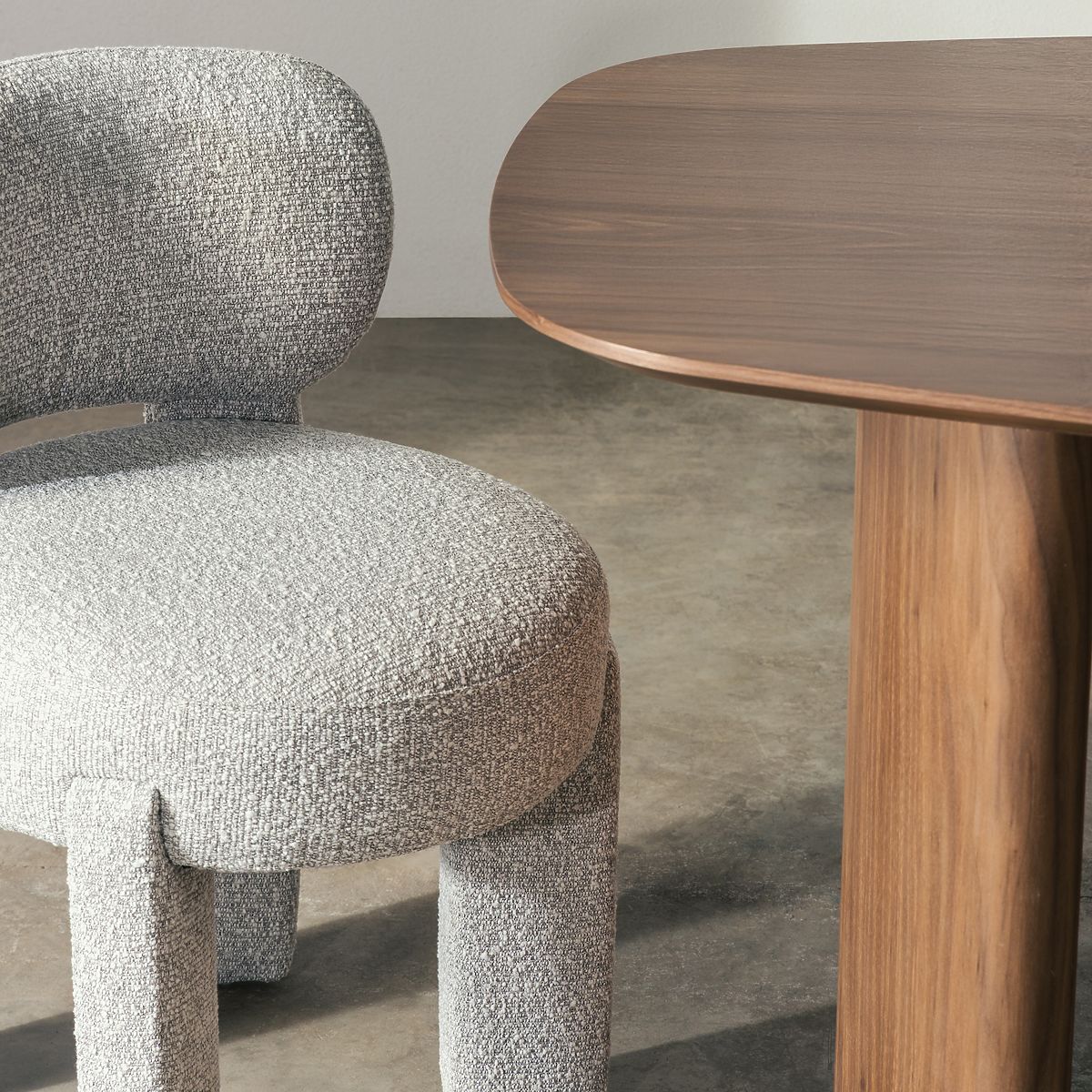 Lukahome.pl » Selfdalnia i kuchnia / Wyżywienie krzesło / Tapicerowane krzesło Falone szare, boucle, zaokrąglone kształty