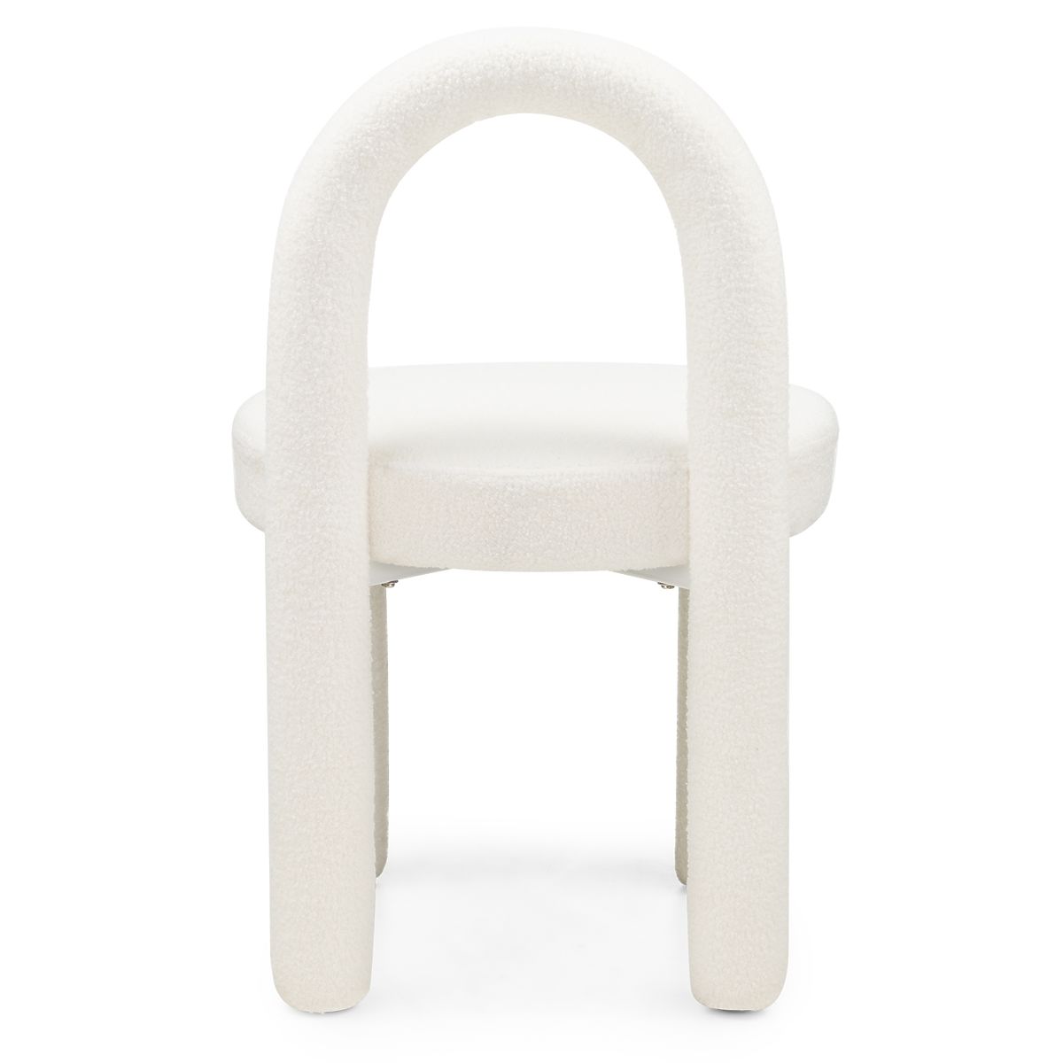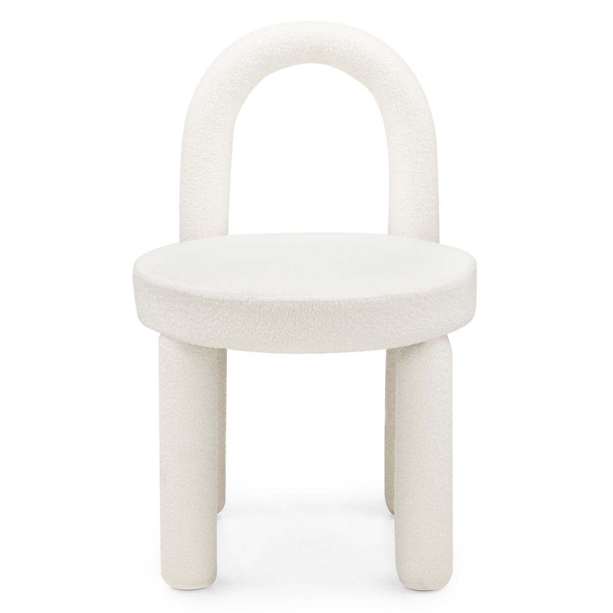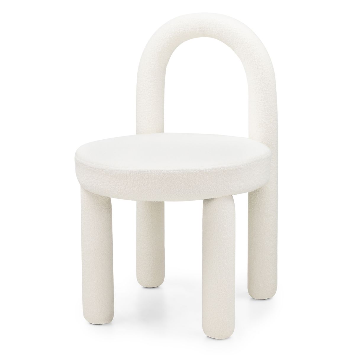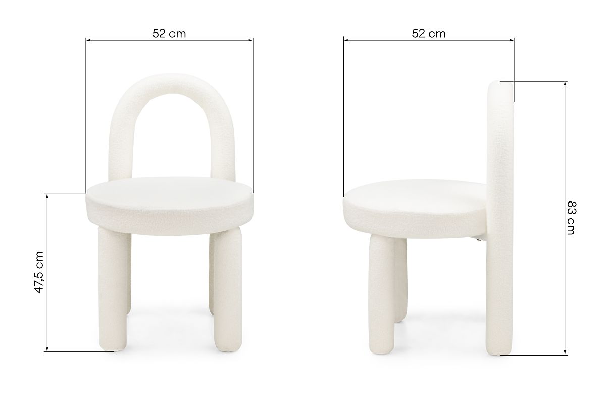 Krzesło Ivo to kwintesencja nowoczesnego designu, wzbogacona o wyjątkowe detale i organiczne linie, które czynią je interesującym elementem każdego wnętrza. Jego miękko zaokrąglony kształt i łukowato zakrzywione oparcie nie tylko dodają elegancji, ale także czynią je ulubionym miejscem na chwile relaksu. Miękka tkanina boucle w kolorze ecru, pokrywająca całą konstrukcję krzesła, wnosi do wnętrza przytulność i delikatny powiew luksusu. Solidna konstrukcja gwarantuje trwałość, a przemyślany kształt dba o ergonomię, zapewniając wygodę podczas dłuższego siedzenia. Krzesło Ivo doskonale pasuje zarówno do toaletki, jak i do salonu czy jadalni – wszędzie tam, gdzie ważne jest połączenie komfortu z nowoczesną estetyką.