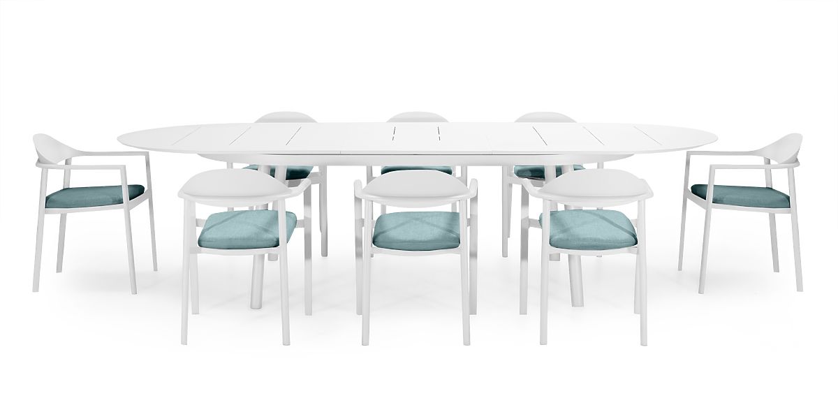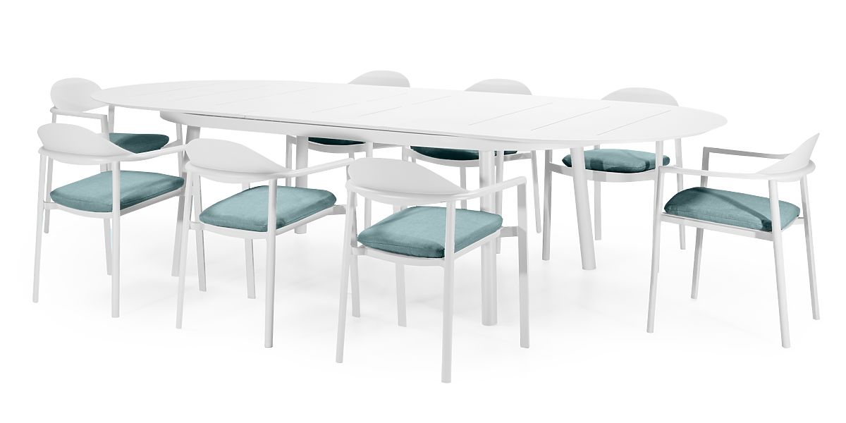 Lukahome.pl » Garden / ogrododowa meble / Zestaw ogrodowy Marinelli, stół rozkładany 230-300 cm + 8 krzeseł, aluminium, biały