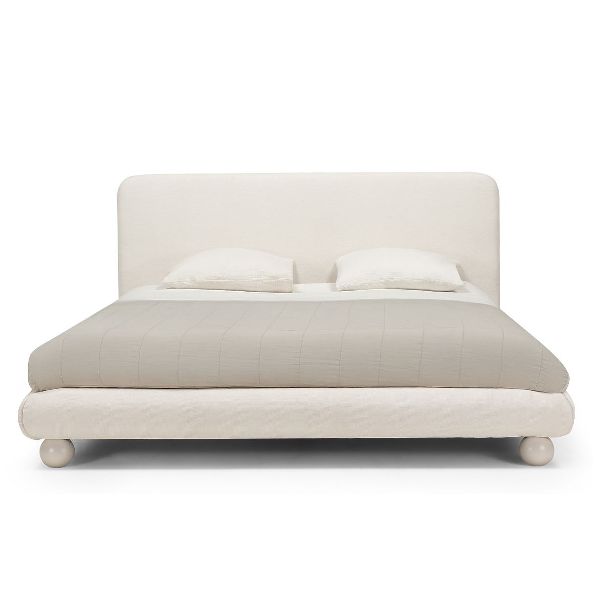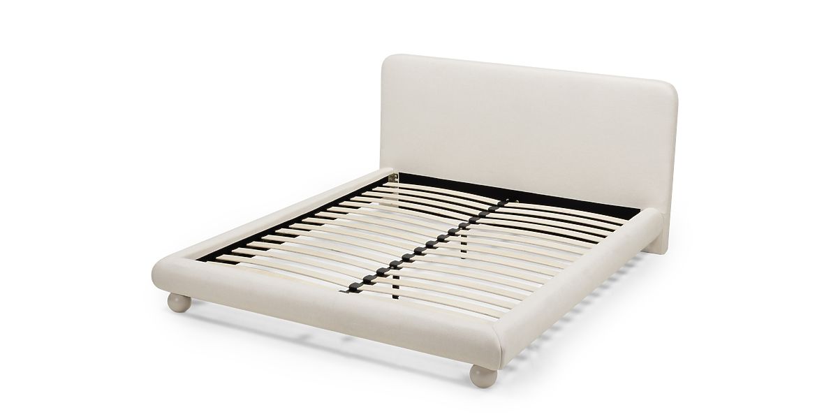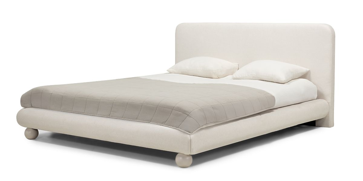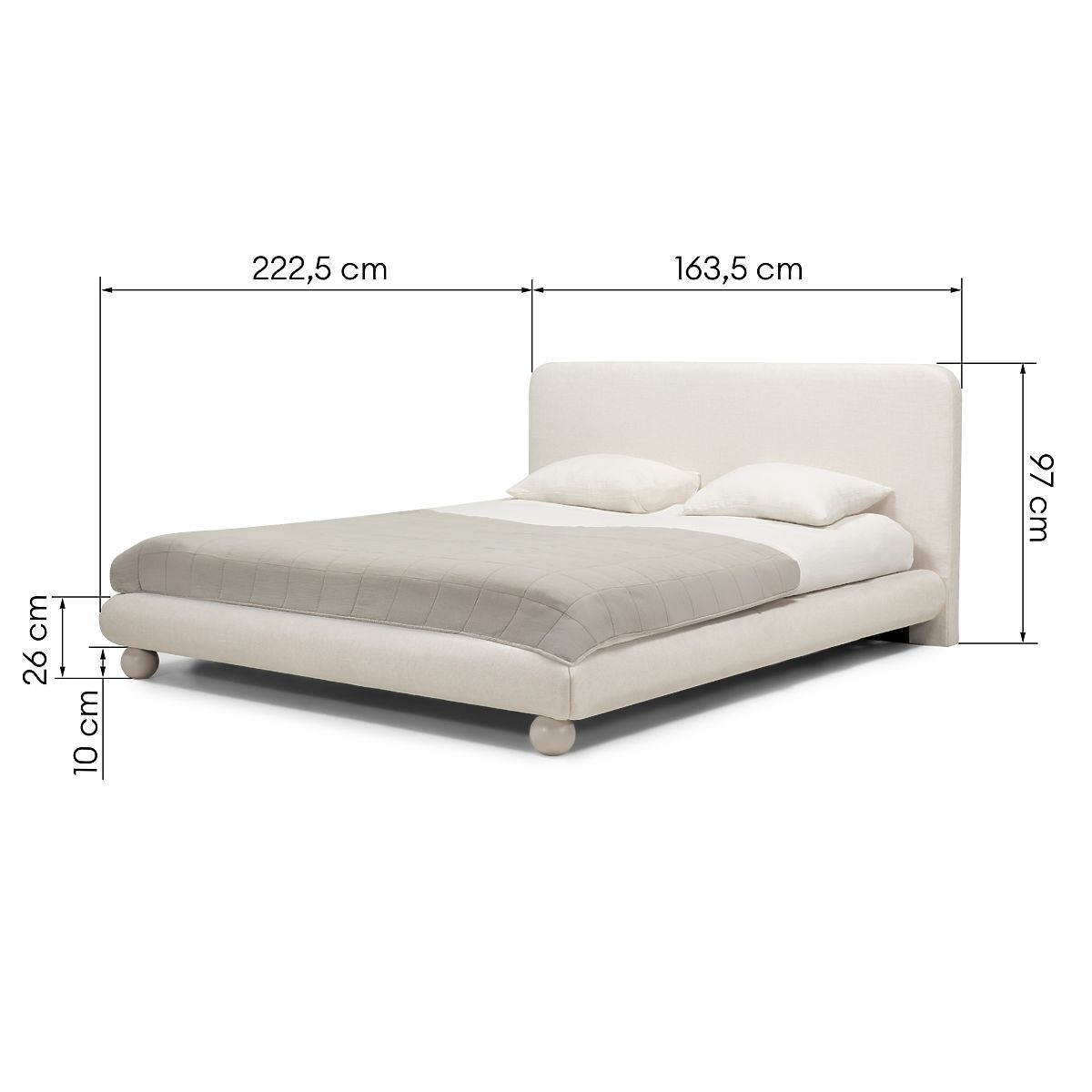 Tapicerowane łóżko Booli z kulowymi nogami w jasnobeżowym kolorze. .. więcej