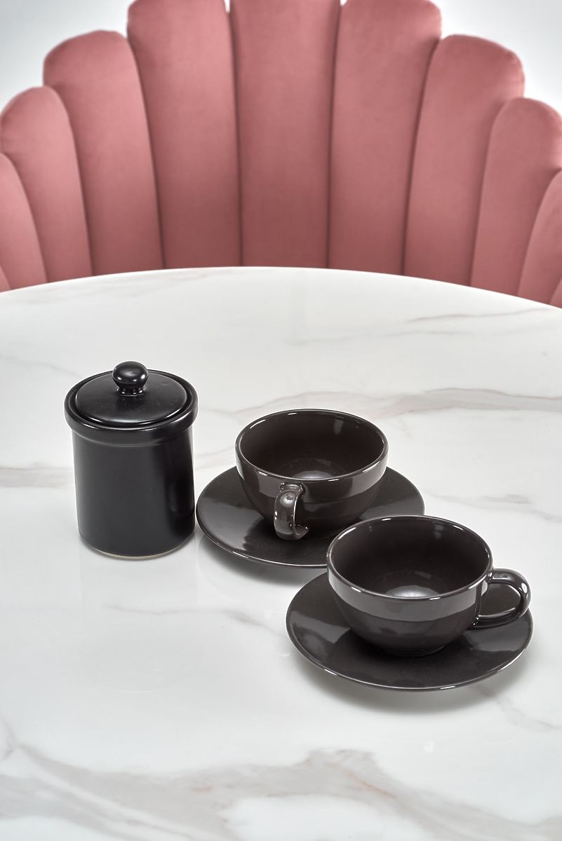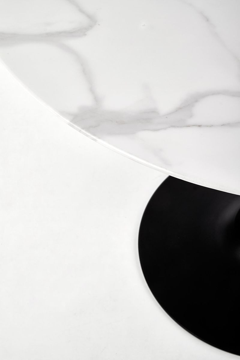 Okrągły stół AMBROSIO z marmurowym blatem i czarnymi nogami. .. więcej