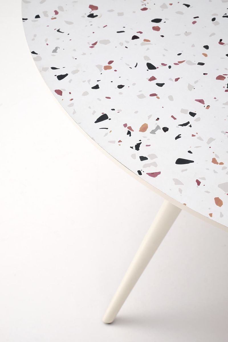 Stół ARAMIS z blatem terazzo i białymi nogami. .. więcej