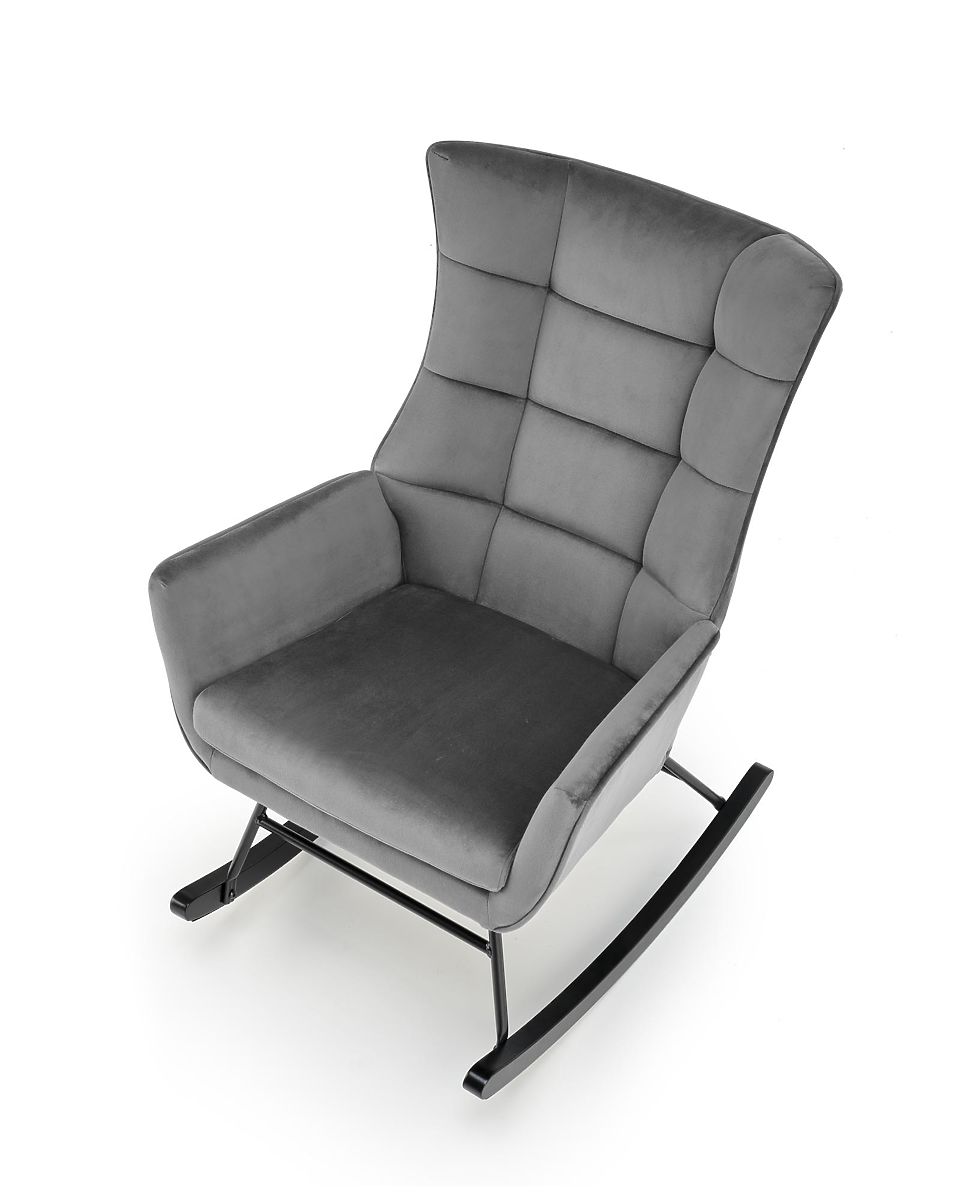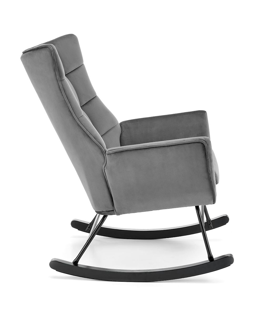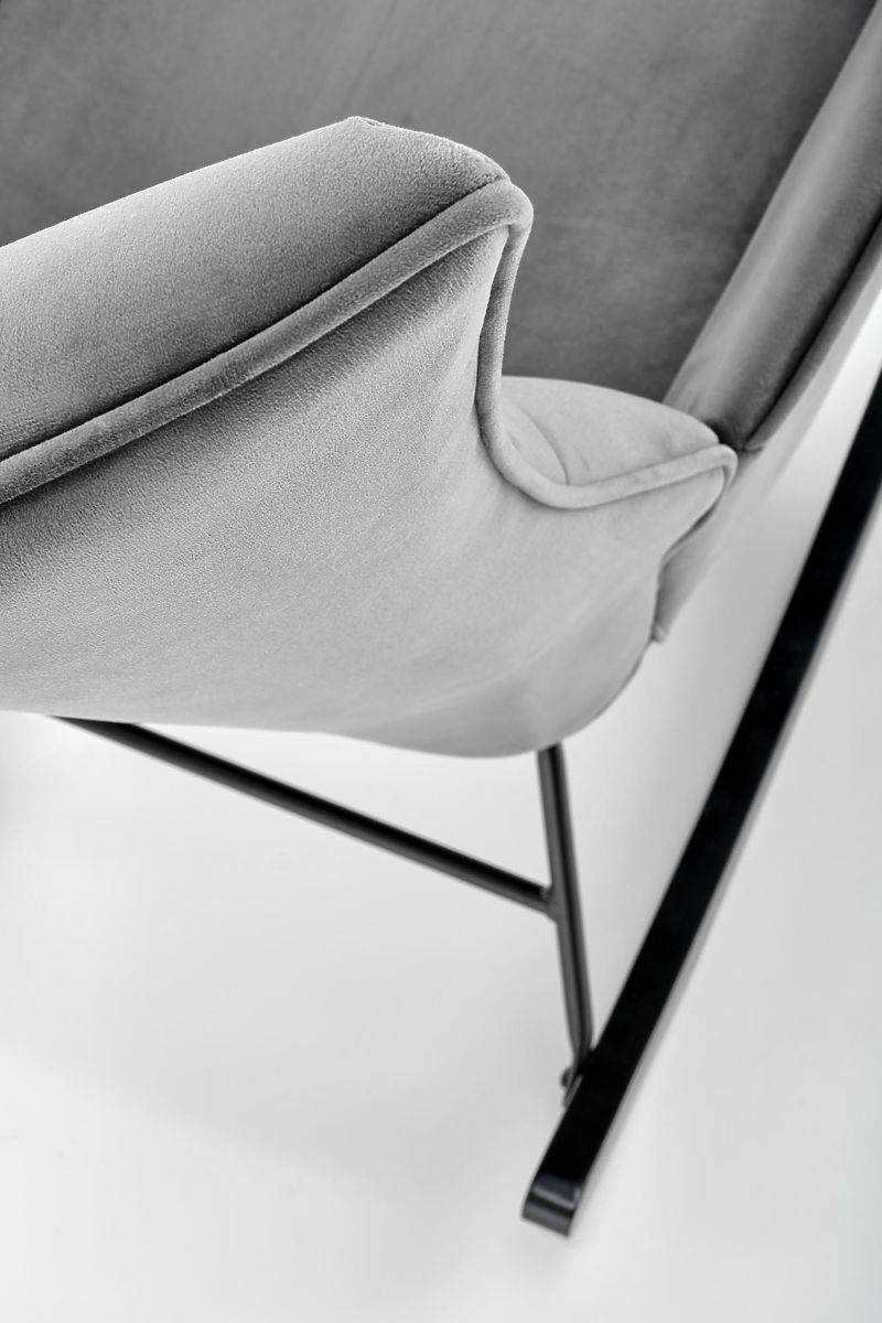 Szary fotel bujany BAZALTO z aksamitu i drewna. .. więcej