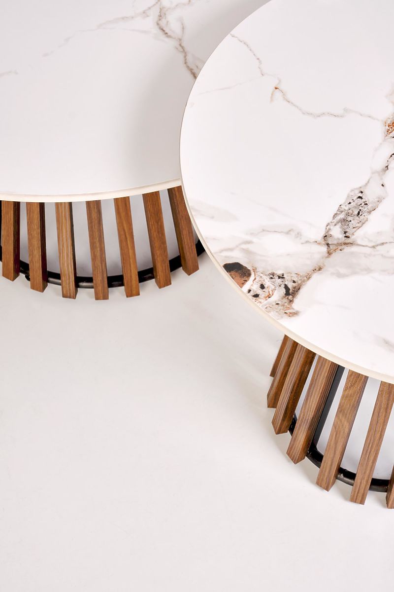Lukahome.pl » Stoły i stoliki kawowe / Stoliki kawowe / CARINA stolik konferencyjny beżowy marmur / orzech (2szt=1szt)