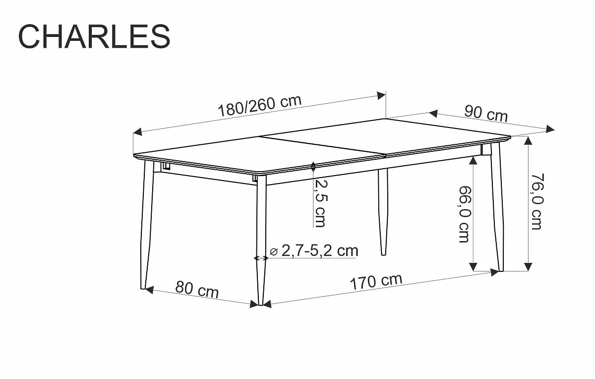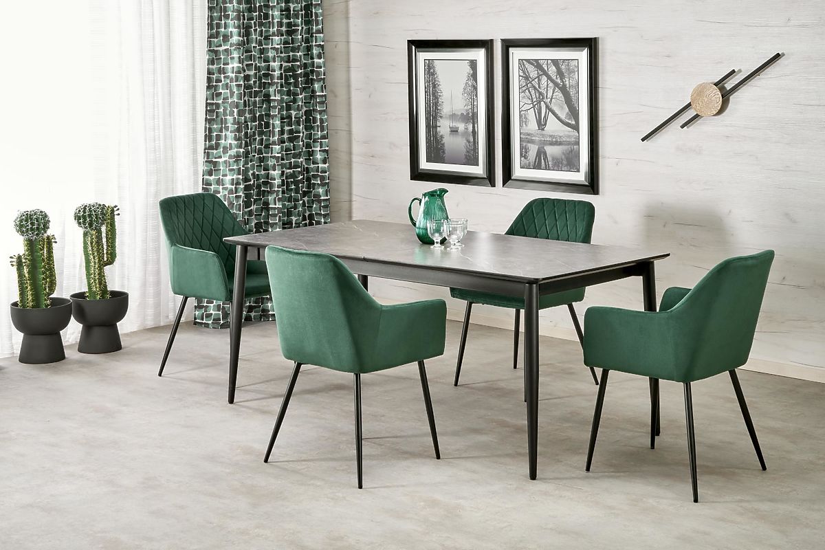 Lukahome.pl » Jadalnia i kuchnia / Stoły jadalne / CHARLES stół rozkładany, blat - szary marmur, nogi - czarne