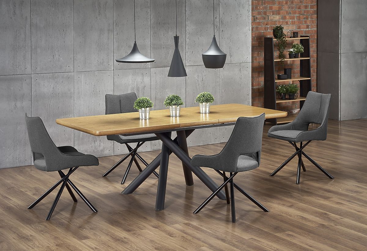 Lukahome.pl » Jadalnia i kuchnia / Stoły jadalne / DERRICK rozkładany stół dąb naturalny / czarny (2p=1ks)
