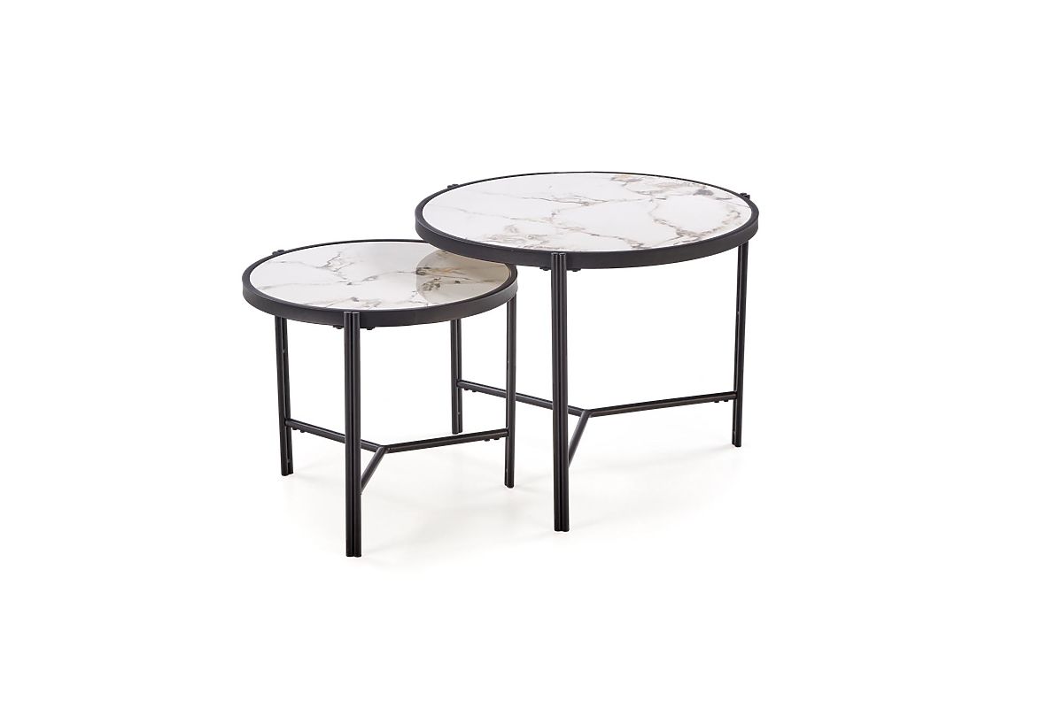 Lukahome.pl » Stoły i stoliki kawowe / Stoliki kawowe / Zestaw 2 ławek FATIMA, biały marmur / czarny (1p=1szt)