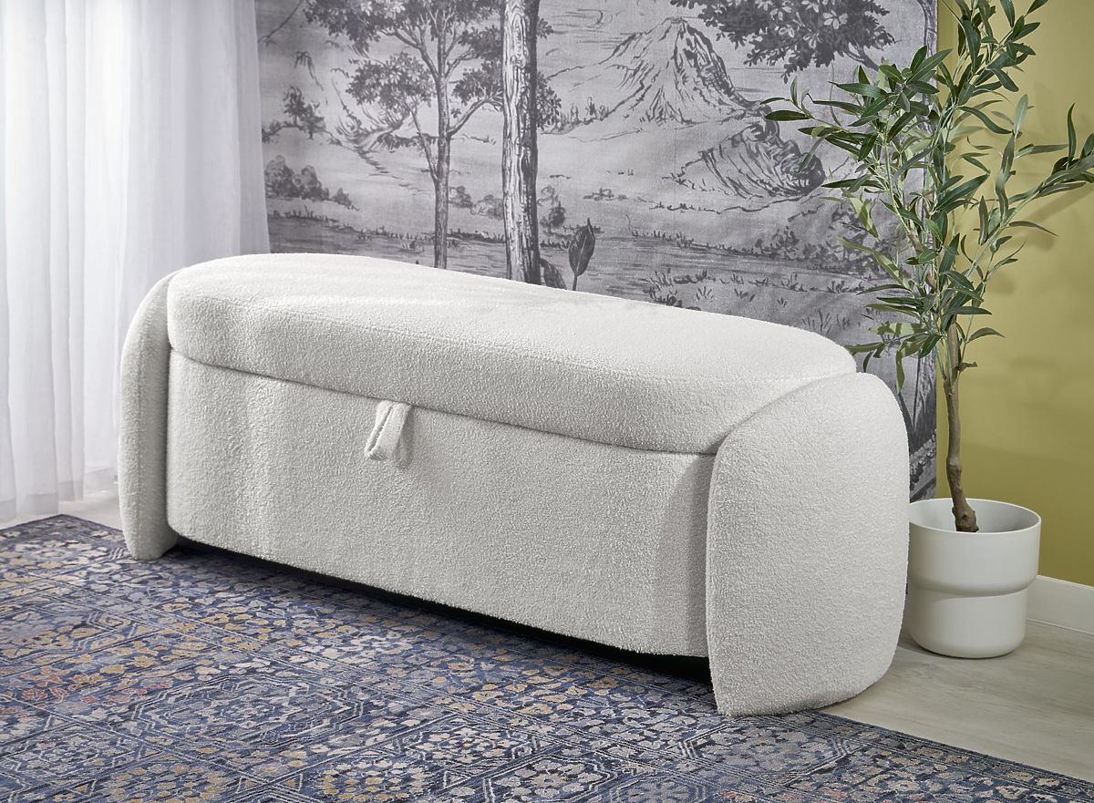 Ławka FICARIA z funkcją przechowywania, kremowa tkanina bouclé. .. więcej