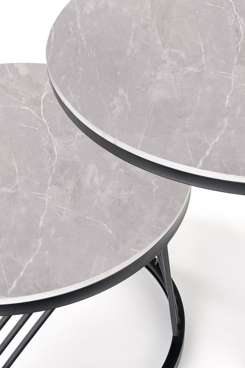Lukahome.pl » Stoły i stoliki kawowe / Stoliki kawowe / Zestaw 2 stolików FLAMINGO, popielaty marmur/czarny (2szt=1kpl)