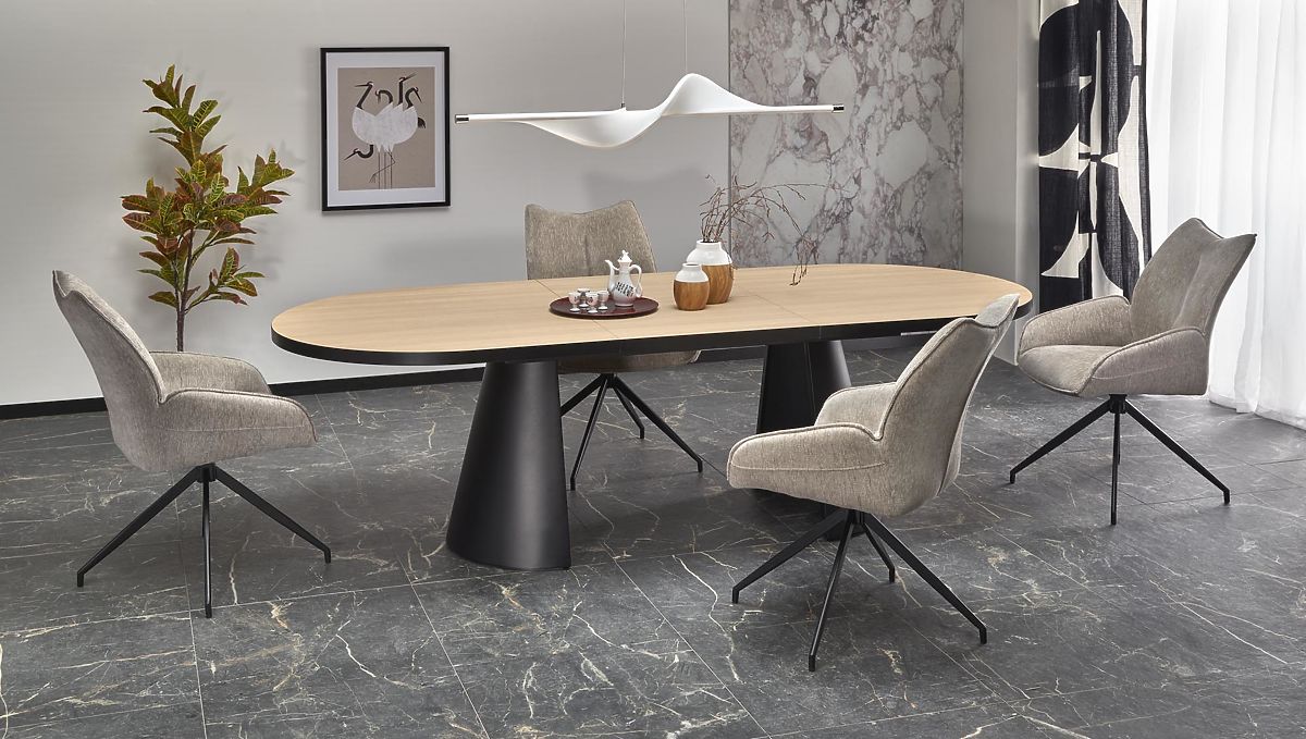 Lukahome.pl » Jadalnia i kuchnia / Stoły jadalne / Rozkładany stół GIACOMO, blat - naturalny, noga - czarna (2p=1szt)