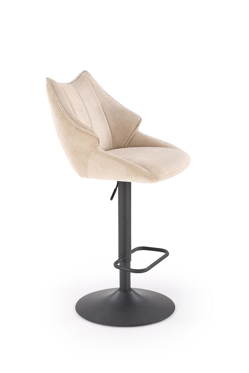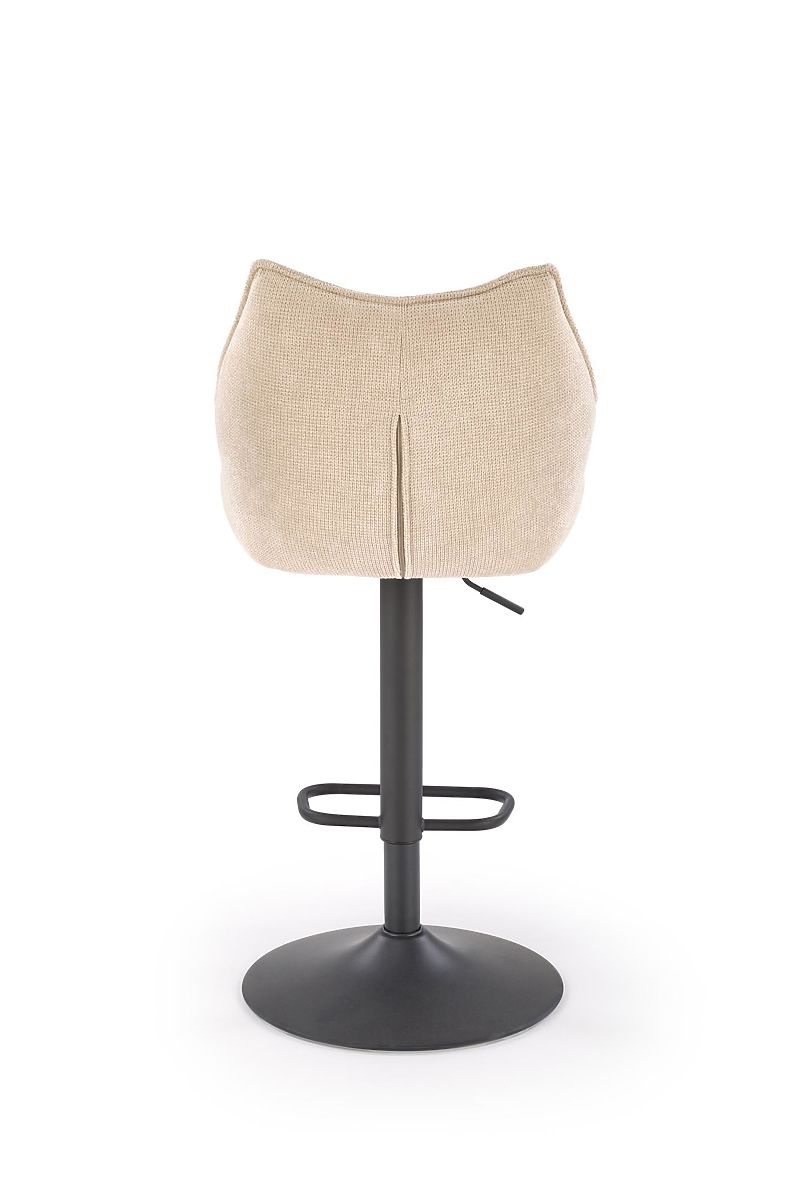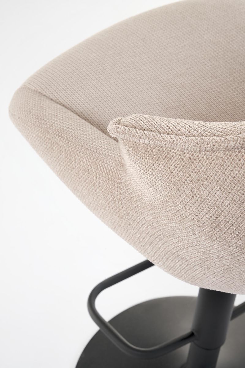 Krzesło barowe z beżowym siedziskiem i czarnymi nogami. .. więcej