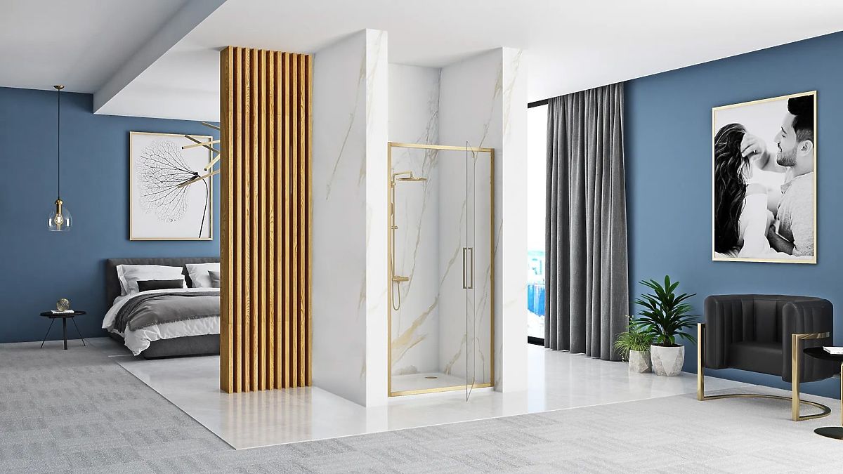 Drzwi prysznicowe REA Rapid Swing 90 ZŁOTE SZCZOTKOWANE