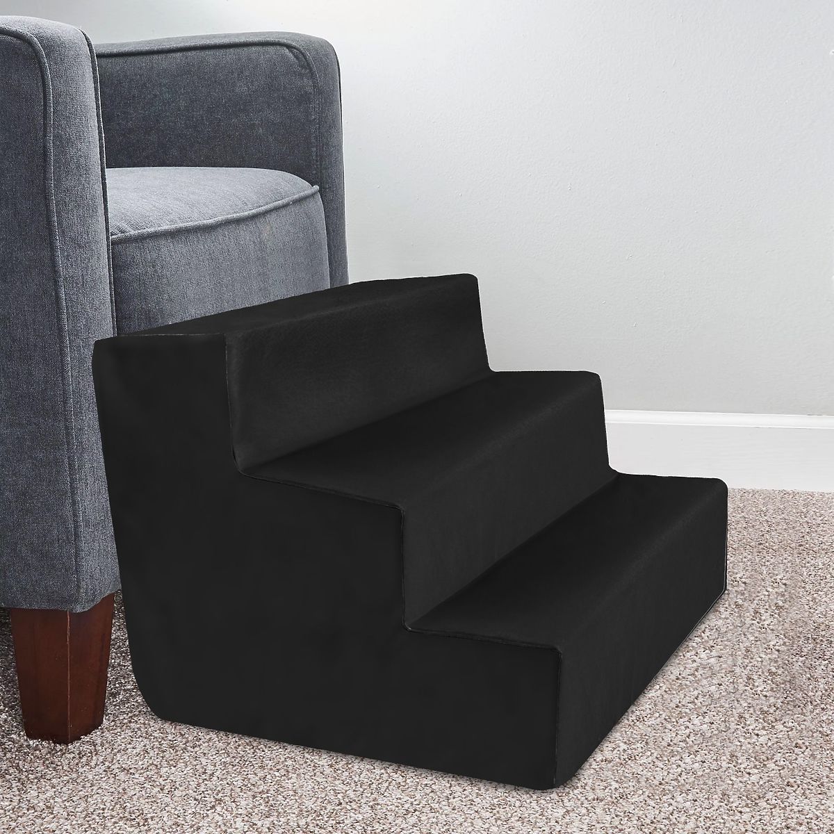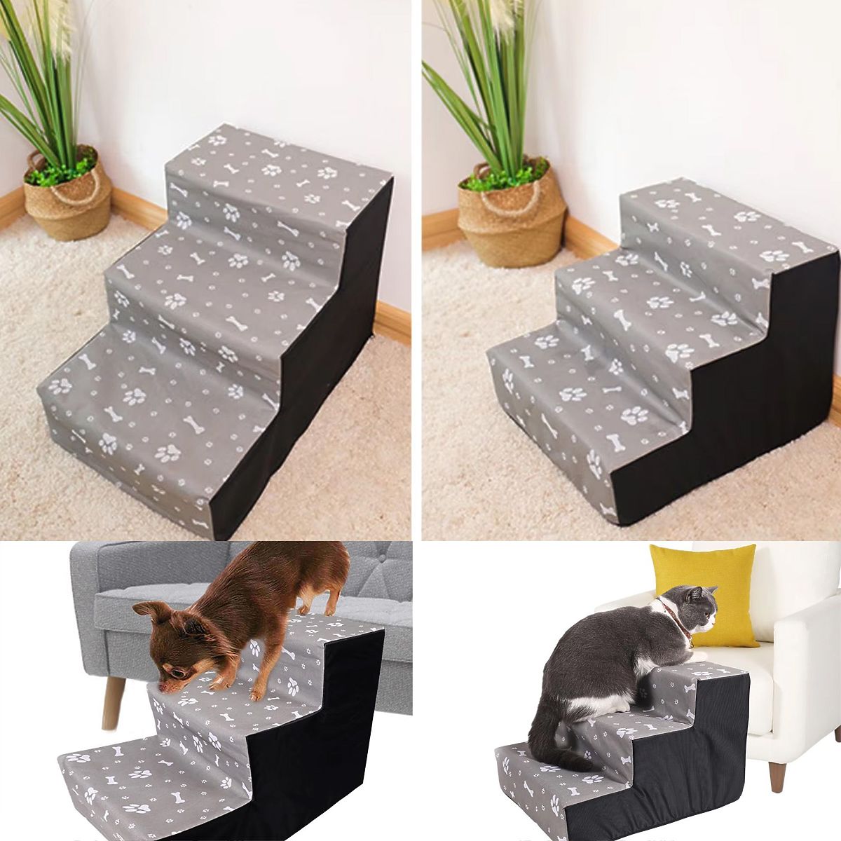 Schodki dla zwierząt to praktyczne i wygodne rozwiązanie dla Twojego pupila. Dzięki trzem stabilnym stopniom umożliwiają łatwe i bezpieczne wspinanie się na kanapę, łóżko lub inne podwyższone powierzchnie. Wykonane z trwałych materiałów, są lekkie, a jednocześnie solidne, co zapewnia komfort zarówno dla małych psów, jak i kotów. Klasyczny czarny design doskonale pasuje do każdego wnętrza. Pokrowiec można łatwo zdjąć i wyczyścić, co ułatwia utrzymanie produktu w czystości.
