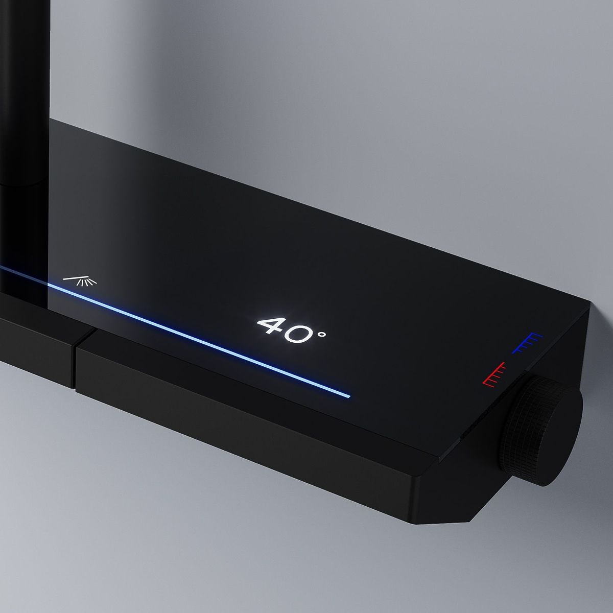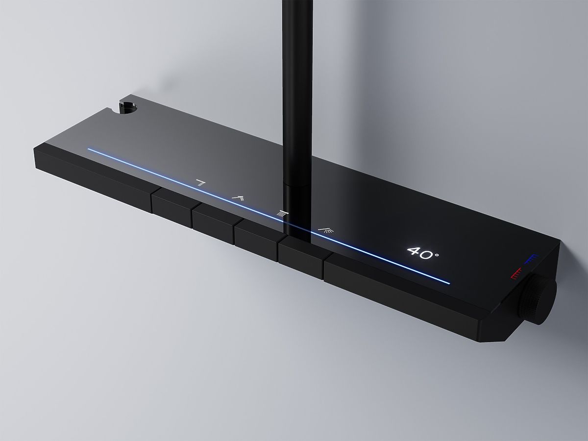 Zestaw wyposażony jest w termostat, intuicyjny panel sterowania z podświetlanymi przyciskami oraz nowoczesny wyświetlacz LED, który informuje o temperaturze wody – bez potrzeby podłączenia do prądu.