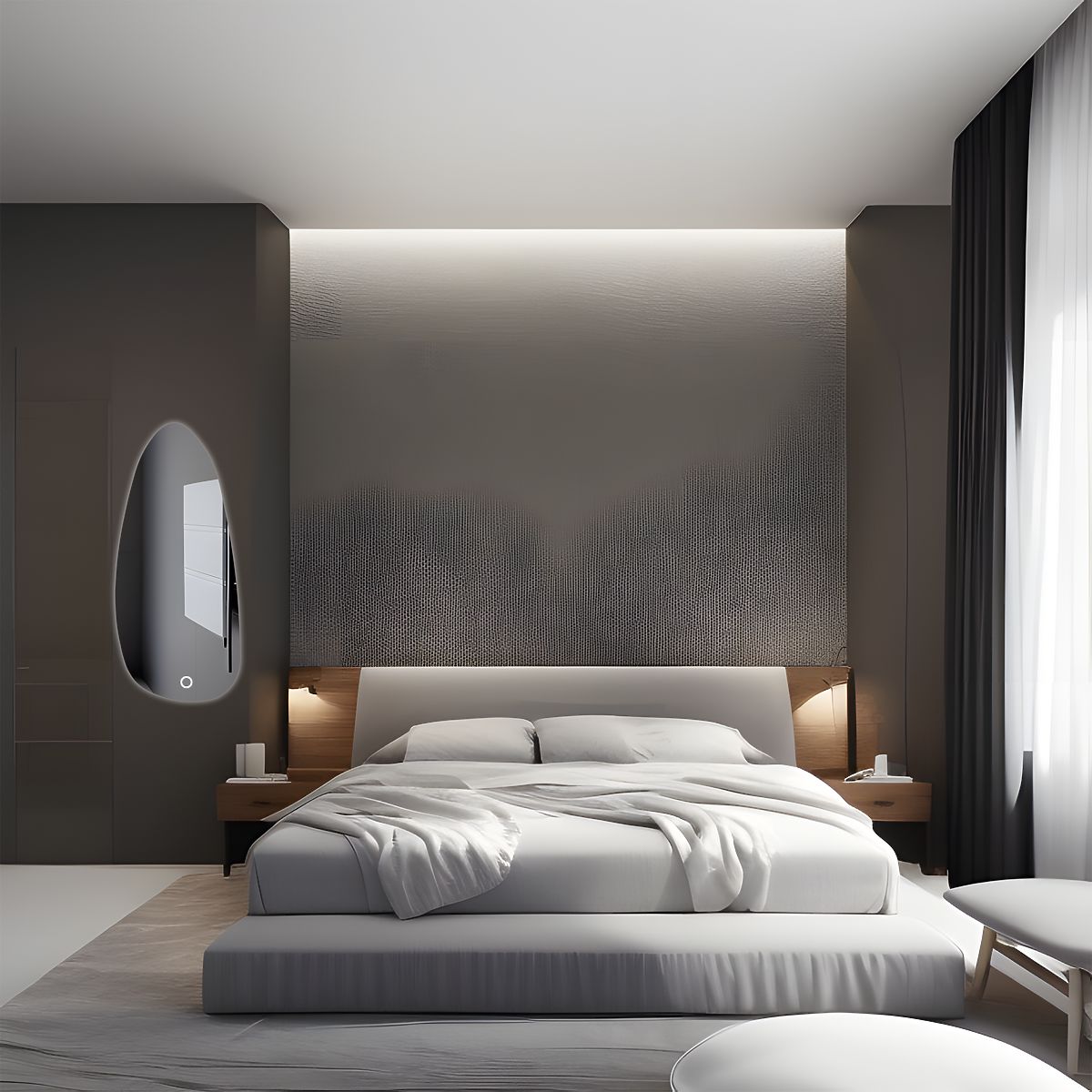 Podłużne lustro LED o nieregularnym kształcie z wbudowanym włącznikiem dotykowym. .. więcej