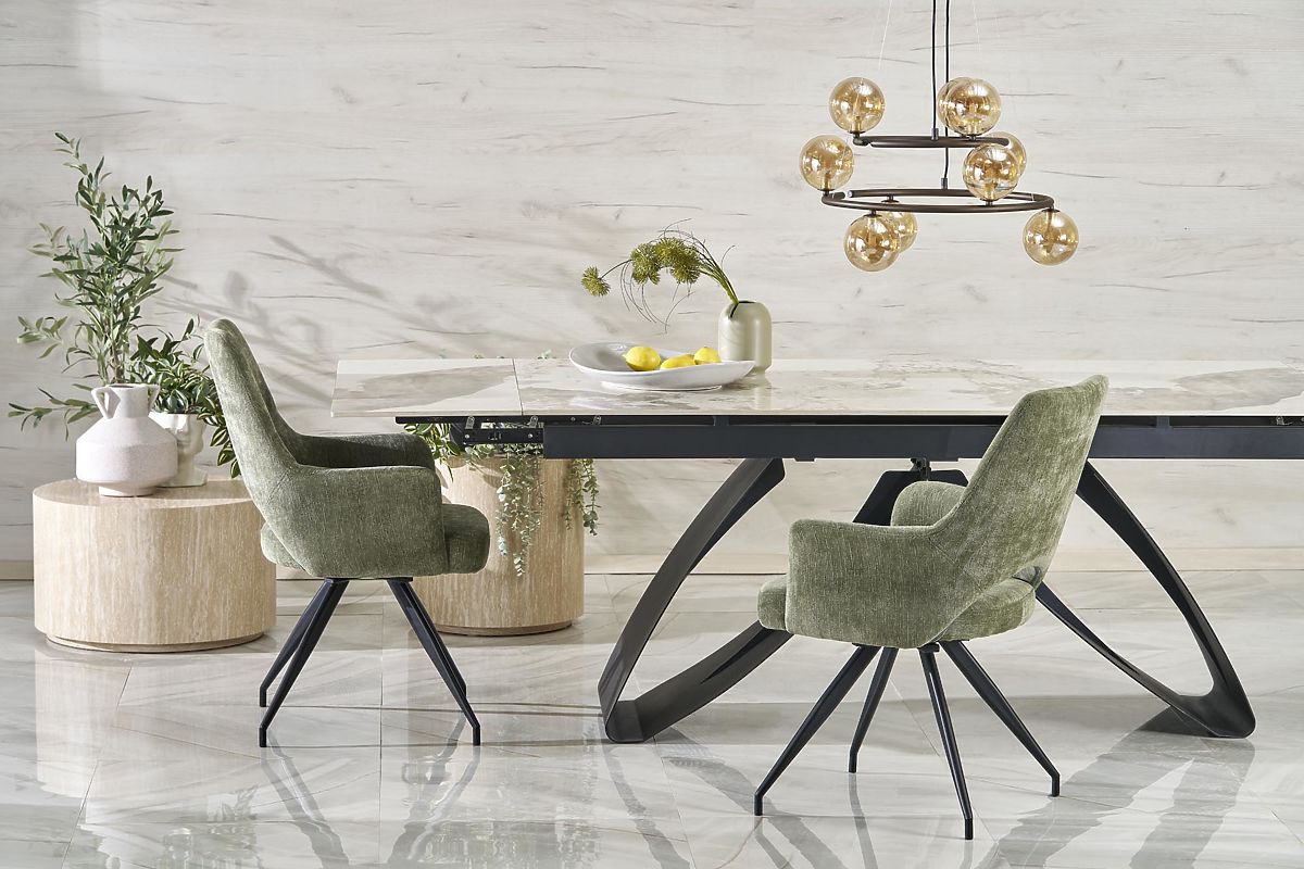 Lukahome.pl » Jadalnia i kuchnia / Stoły jadalne / HILARIO rozkładany stół, blat - biały marmur, nogi - czarne (3p=1szt)