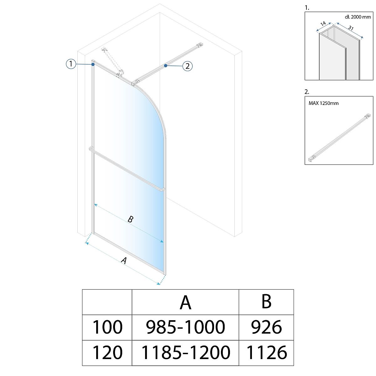 Nowoczesna ściana prysznicowa z hartowanego szkła. .. więcej