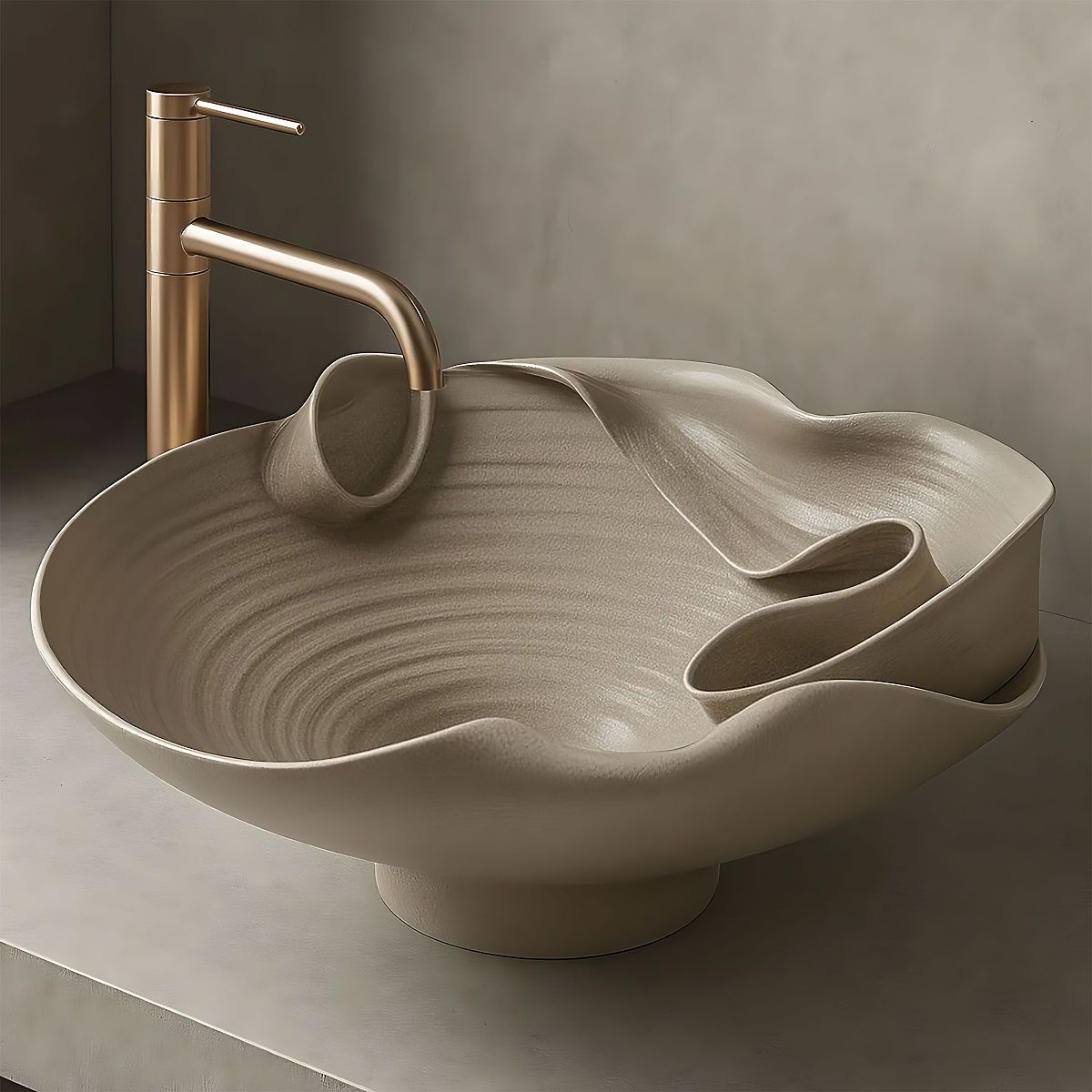 Prezentowana umywalka to nowość w ofercie marki Rea – Łazienka z Wyobraźnią, zaprojektowana dla osób poszukujących wyjątkowych kształtów i autentycznego rzemiosła. Należy do kolekcji Hand Made Art – serii, w której każdy egzemplarz jest ręcznie wykonany z pełną dbałością o szczegóły. Brak produkcji seryjnej zapewnia, że każda umywalka delikatnie różni się kształtem i fakturą, zachowując unikalny charakter. Ten model to odważna forma inspirowana ruchem i napięciem materiału. Spiralne załamania przypominają naturalne deformacje skały, falę lub zwiniętą płytę ceramiczną. Wyrazisty, niemal rzeźbiarski kształt czyni umywalkę centralnym punktem łazienki – nie tylko funkcjonalnym, ale i artystycznym. Surowa faktura, szaro-beżowy kolor i matowa powierzchnia tworzą harmonijną całość z nowoczesnymi materiałami: betonem, stalą, kamieniem i szkłem. To oferta dla tych, którzy oczekują więcej – oryginalności, jakości i formy, która nie pozostaje obojętna.
