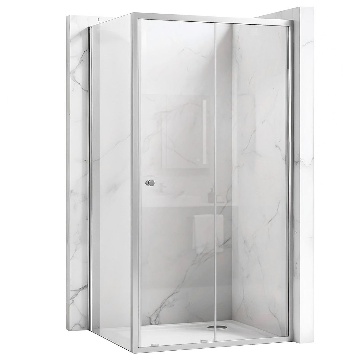 Narożna kabina prysznicowa Primo Slide to eleganckie i funkcjonalne rozwiązanie dla tych, którzy cenią nowoczesny design i komfort codziennego użytkowania. Wyposażona w przesuwne drzwi na kółkach, zapewnia płynne i ciche działanie, jednocześnie oszczędzając miejsce – idealnie pasuje do łazienek o różnych rozmiarach.