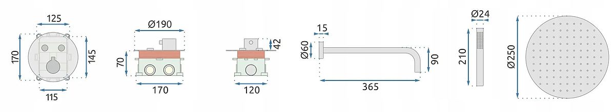 Zestaw jest wyposażony w system Box, który umożliwia szybki montaż i łatwy dostęp do wewnętrznych elementów w razie potrzeby konserwacji. Prosty panel sterowania podkreśla nowoczesny charakter zestawu i doskonale pasuje do minimalistycznych i eleganckich łazienek.