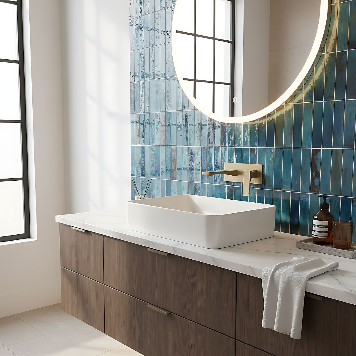 Podtynkowa bateria umywalkowa w złotym szczotkowanym kolorze jest przeznaczona dla tych, którzy cenią sobie nowoczesny styl i ponadczasową elegancję. Jej minimalistyczny design, oparty na prostych liniach i szlachetnym wykonaniu, sprawia, że doskonale pasuje zarówno do aranżacji glamour, jak i nowoczesnych wnętrz.