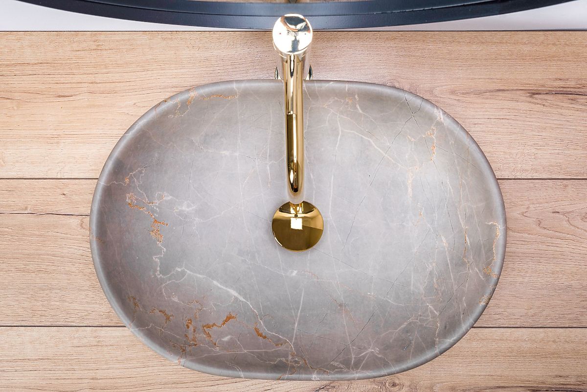 Piękna umywalka imitująca kamień – Lara Stone. Dzięki technice, którą stworzono warstwę powierzchniową umywalki, każdy egzemplarz ma unikalny i jedyny w swoim rodzaju wzór. Ten efekt imituje naturalny kamień. Umywalka jest przystosowana do montażu na blacie lub szafce. Wykonana jest z wysokiej jakości ceramiki sanitarnej. Dzięki specjalnej fazie produkcji jest trwała i łatwa do utrzymania w czystości.