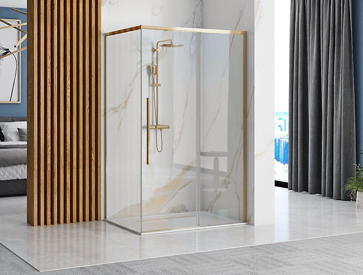 Solar to wyjątkowa, a jednocześnie ponadczasowa i nowoczesna kabina prysznicowa, wykonana z najwyższej jakości materiałów i w pięknym złotym kolorze. Piękne złote wykończenie jest odporne na zabrudzenia i plamy oraz łatwe do czyszczenia. Połączenie złotych profili, długiej rączki i zawiasów wraz z przezroczystymi liniami szklanych powierzchni doskonale uzupełnia zarówno nowoczesne, jak i tradycyjne łazienki. Gold jest wyraźnym liderem na rynku projektowania wnętrz łazienkowych.